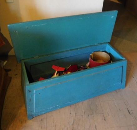 Vintage Hand Made Toy or Wood Slab Work Chest has wear and scratches