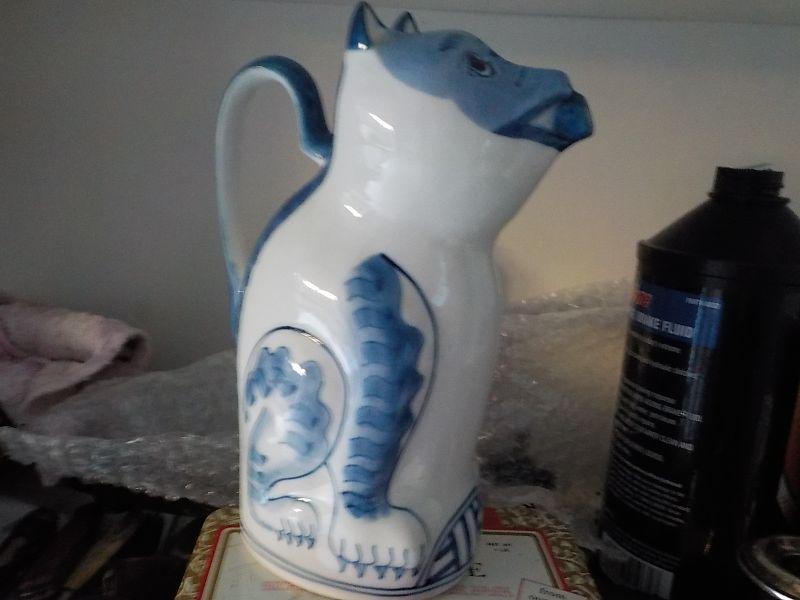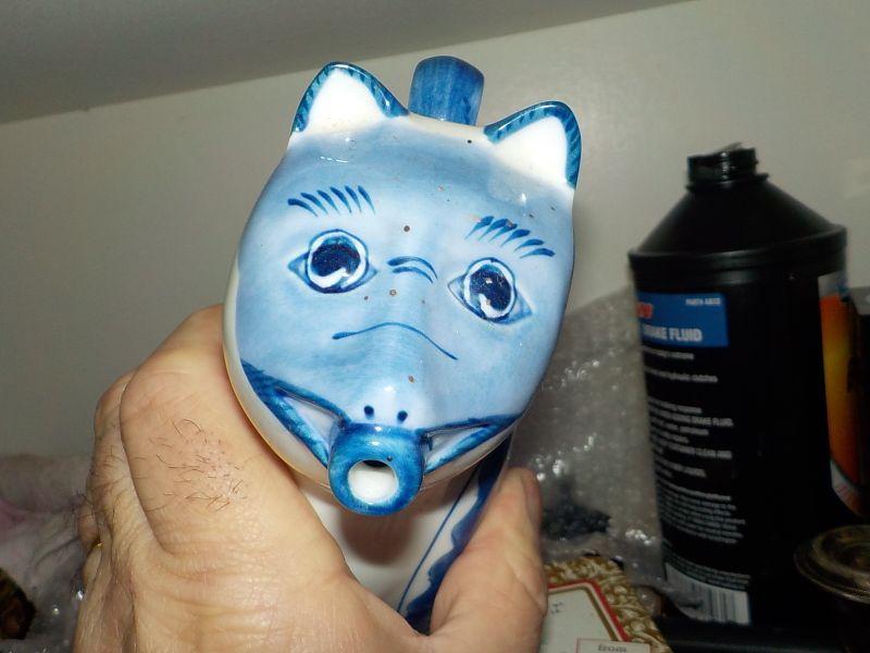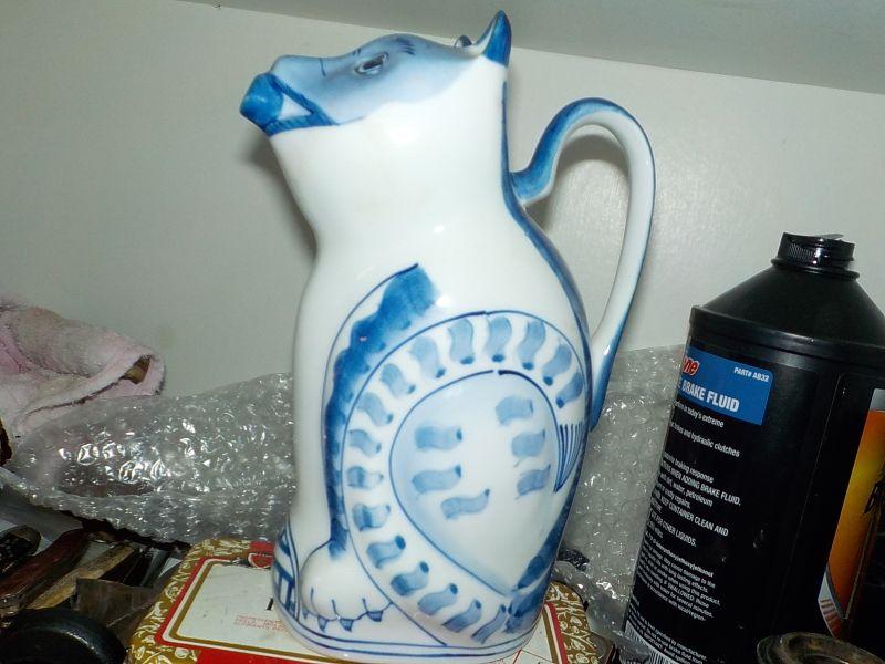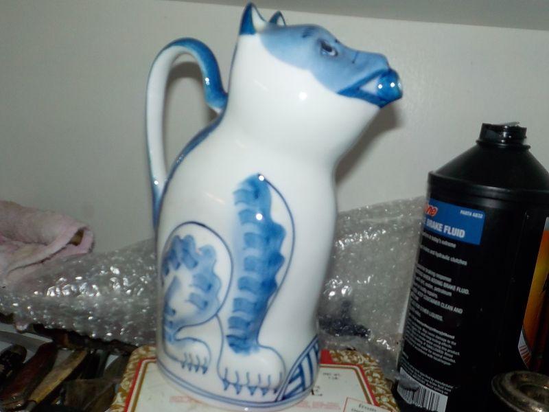 Stands approx. 9 inches made in phillipines. Unique design of cat and pouring spot.