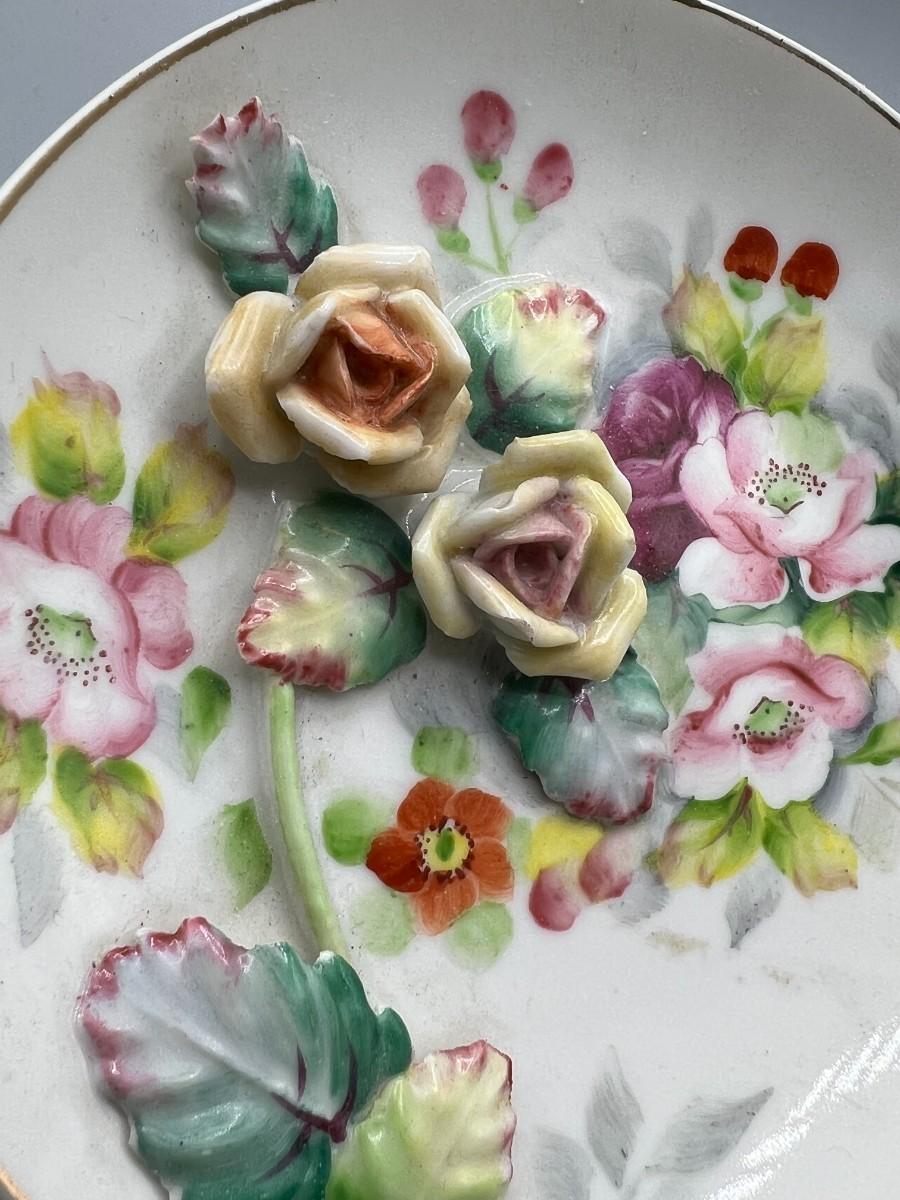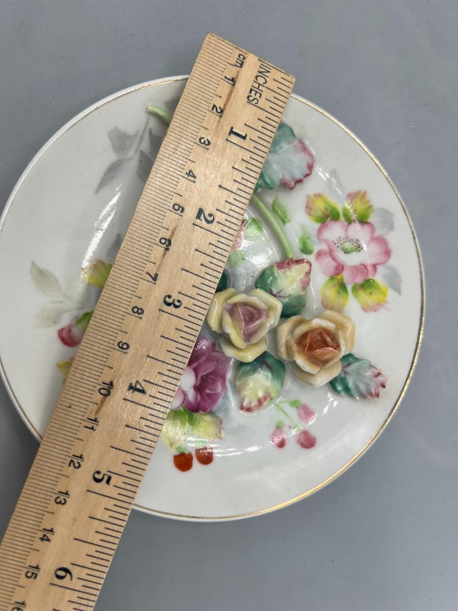 Vintage Hand Painted 3D Raised Flower Pattern Collector Plate Occupied Japan. Good vintage condition. Marked on the back. About 5" size.