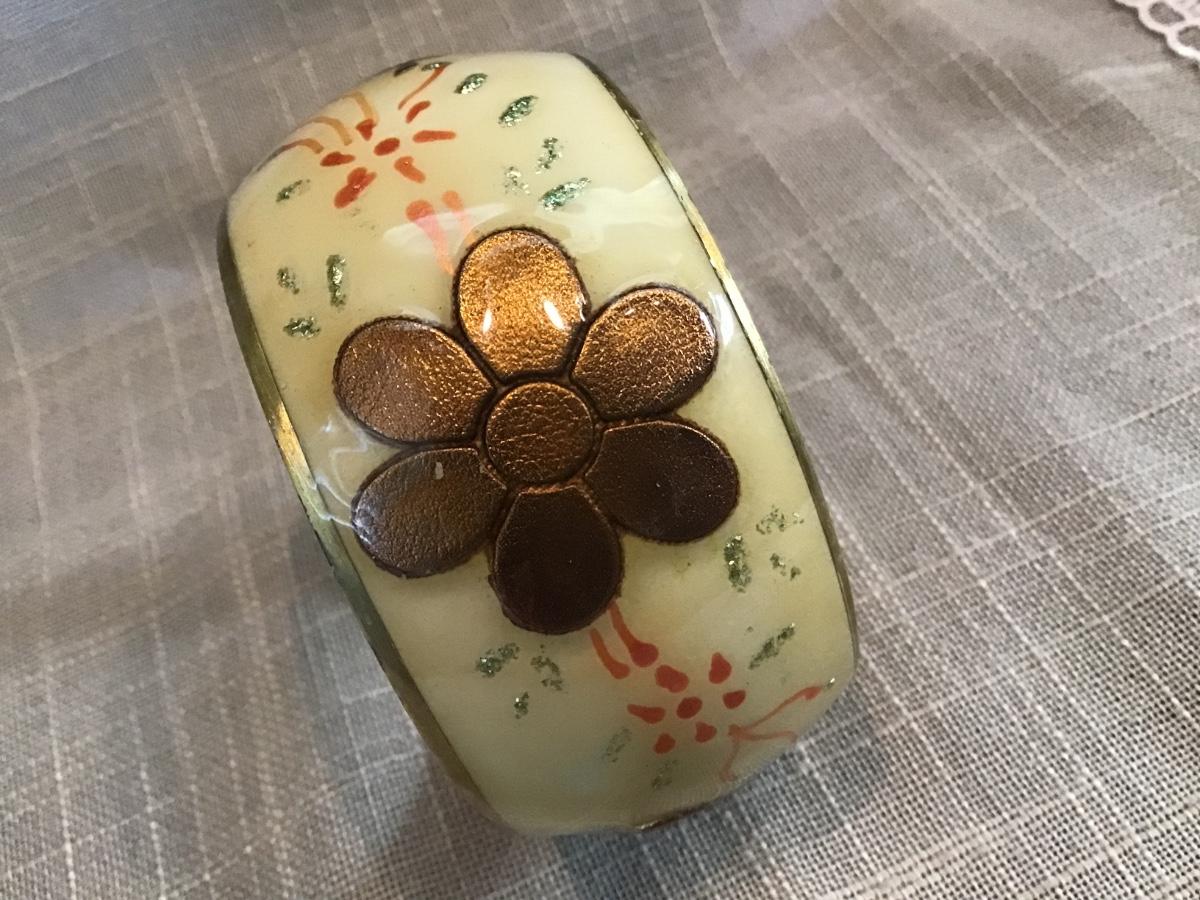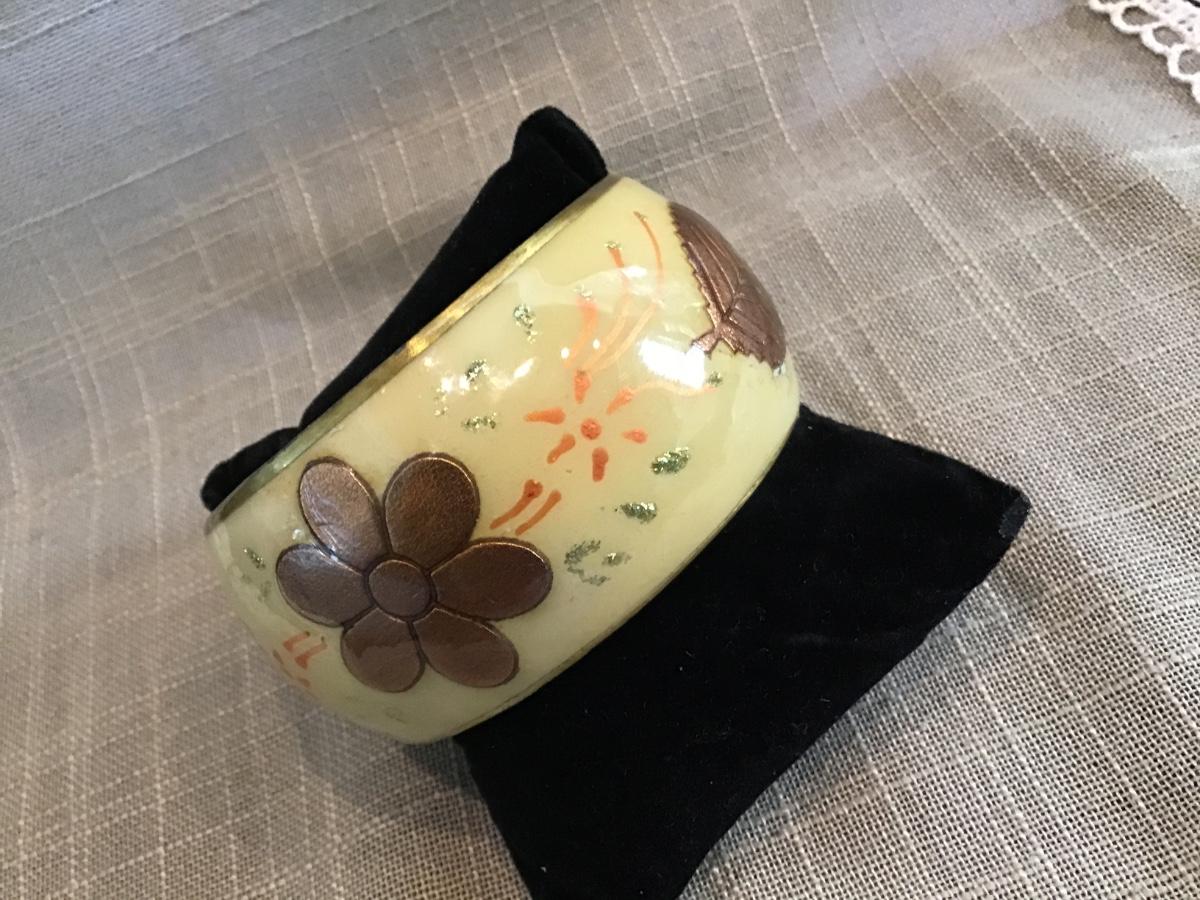 Vintage Hand Painted Brass Resin Glazed Wide Autumn ‚ Bangle Bracelet