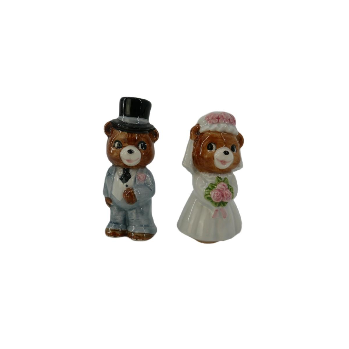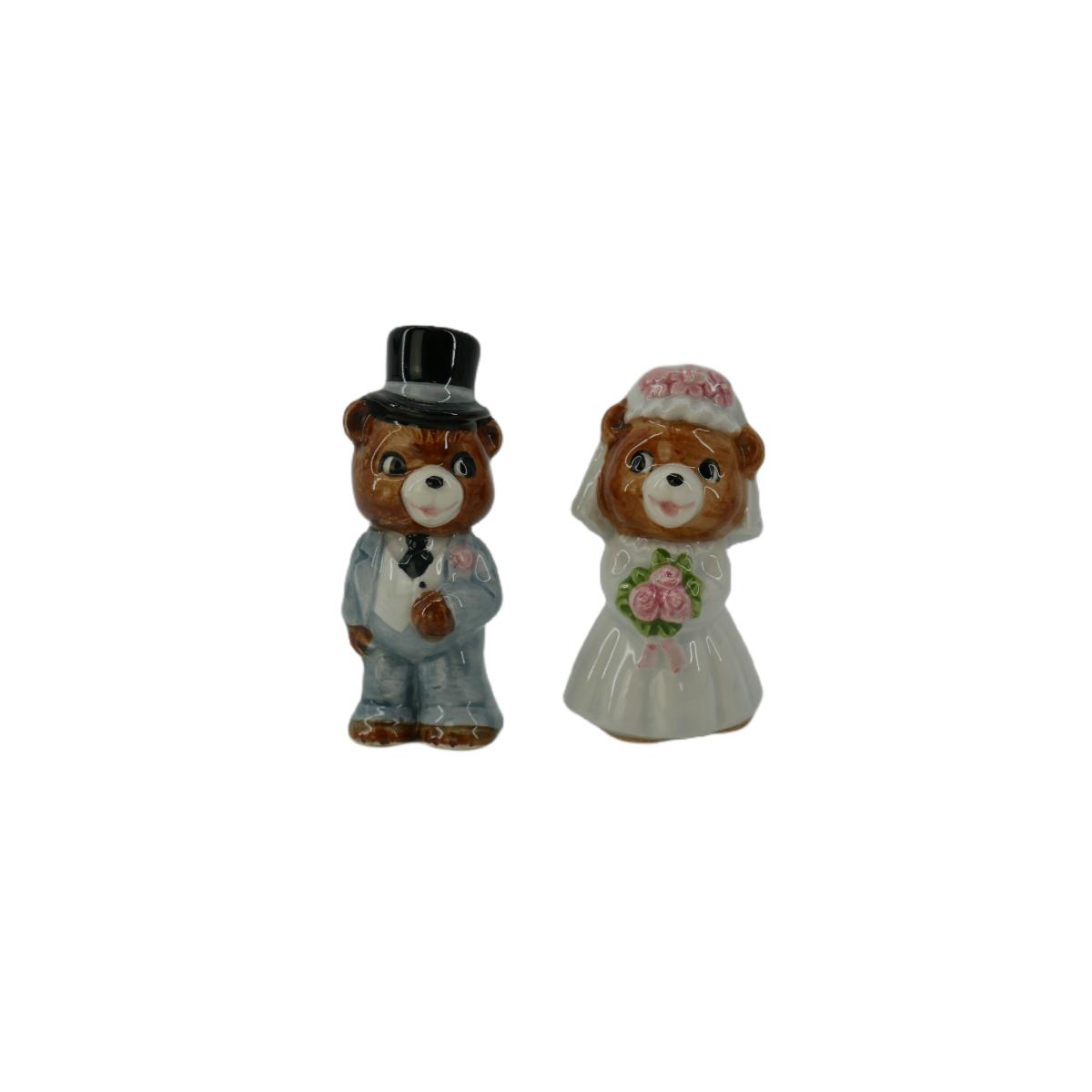 Vintage Hand Painted Bride and Groom Bear Figurines