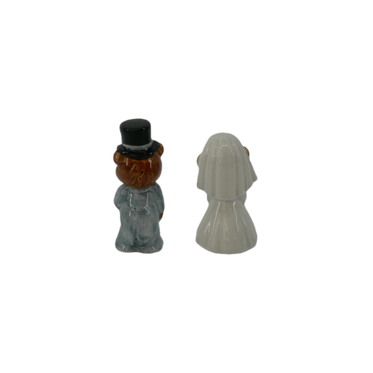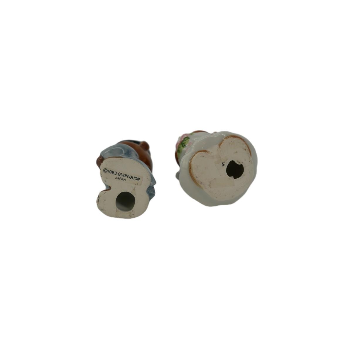 Vintage 1983 hand painted bride and groom wedding bear figurines. Made by Quon-Quon, Japan. Excellent condition! No visible issues found. Each measures L 1" x H 3". Lot weighs 2.3 oz. (C95)