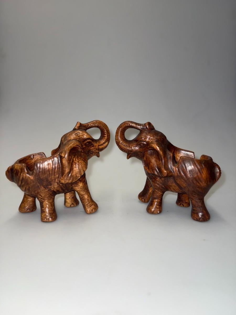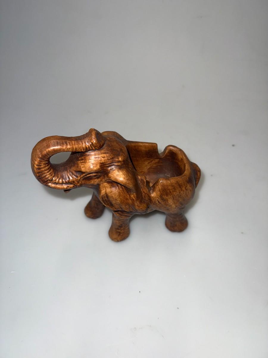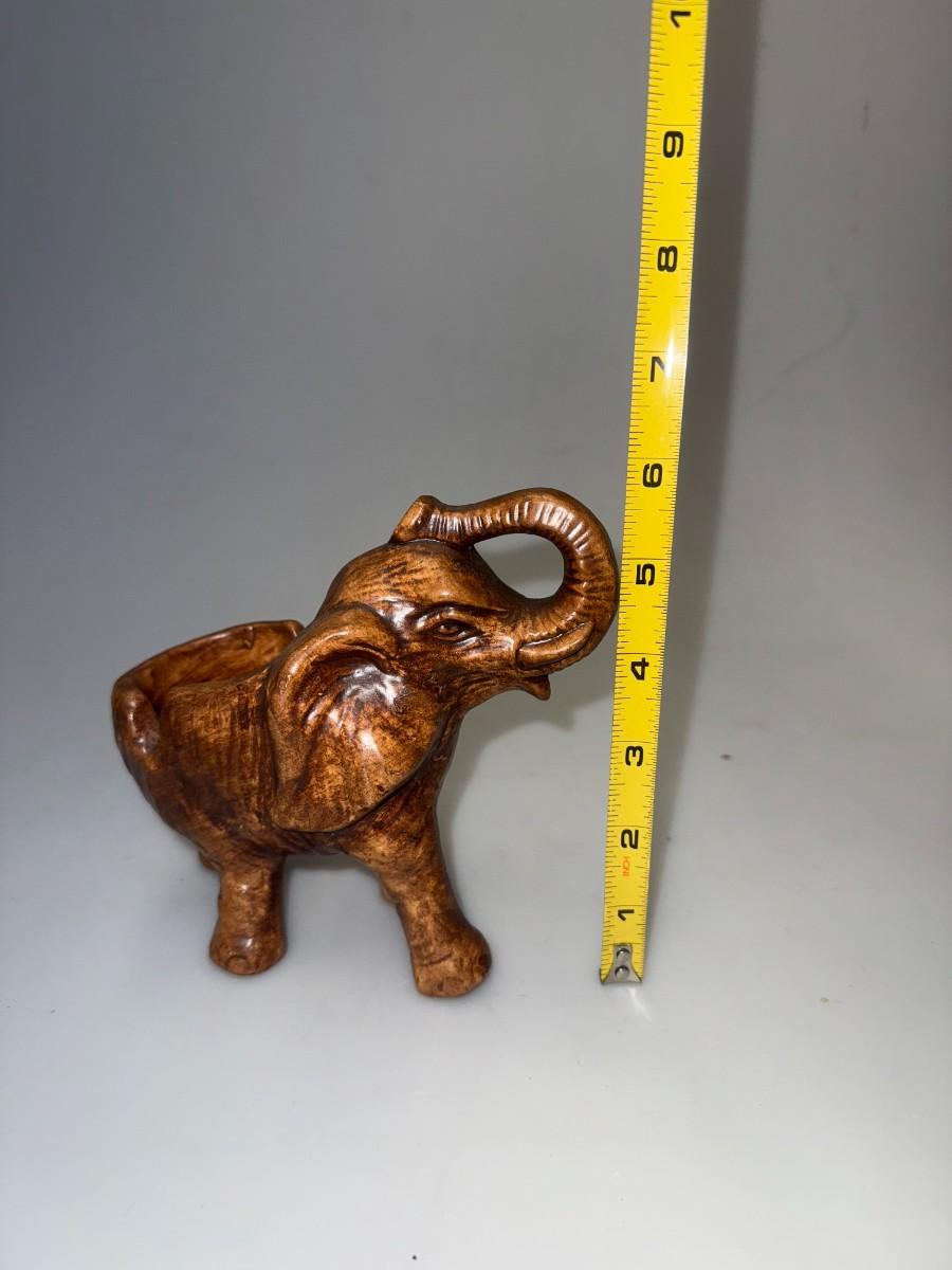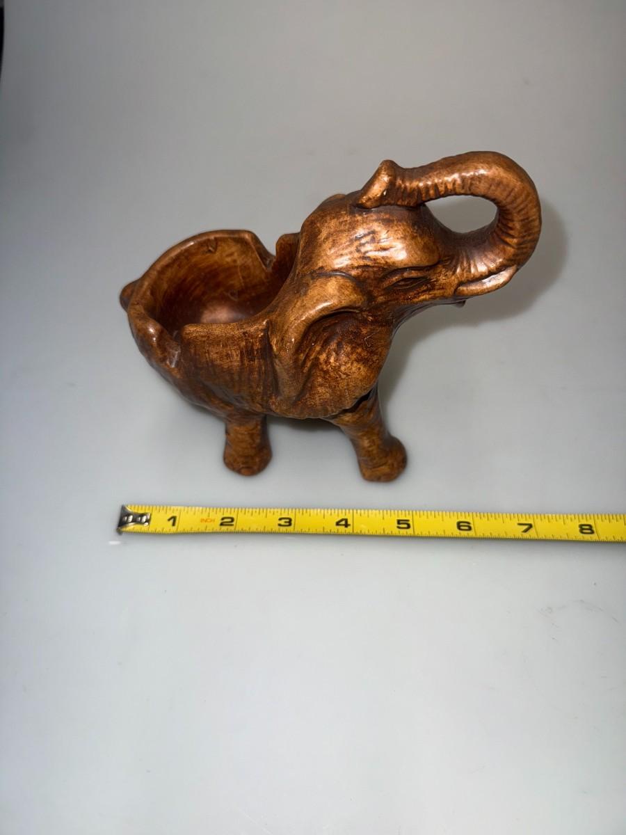 Vintage Hand Painted Ceramic Brown Elephant Ashtray Pottery Figurine Glazed Art