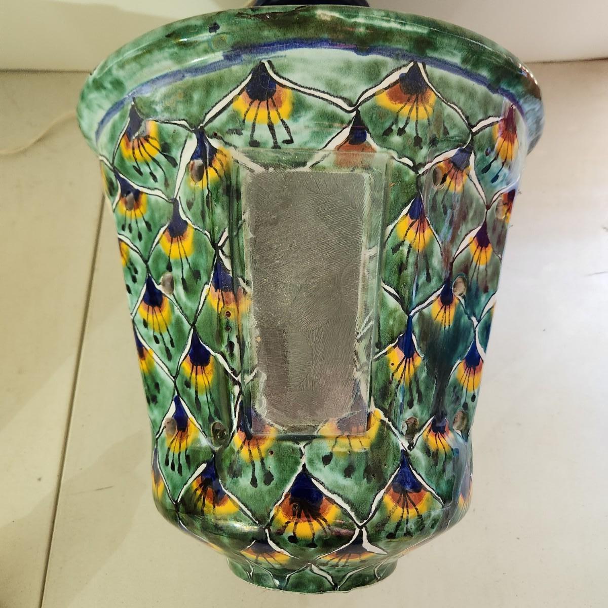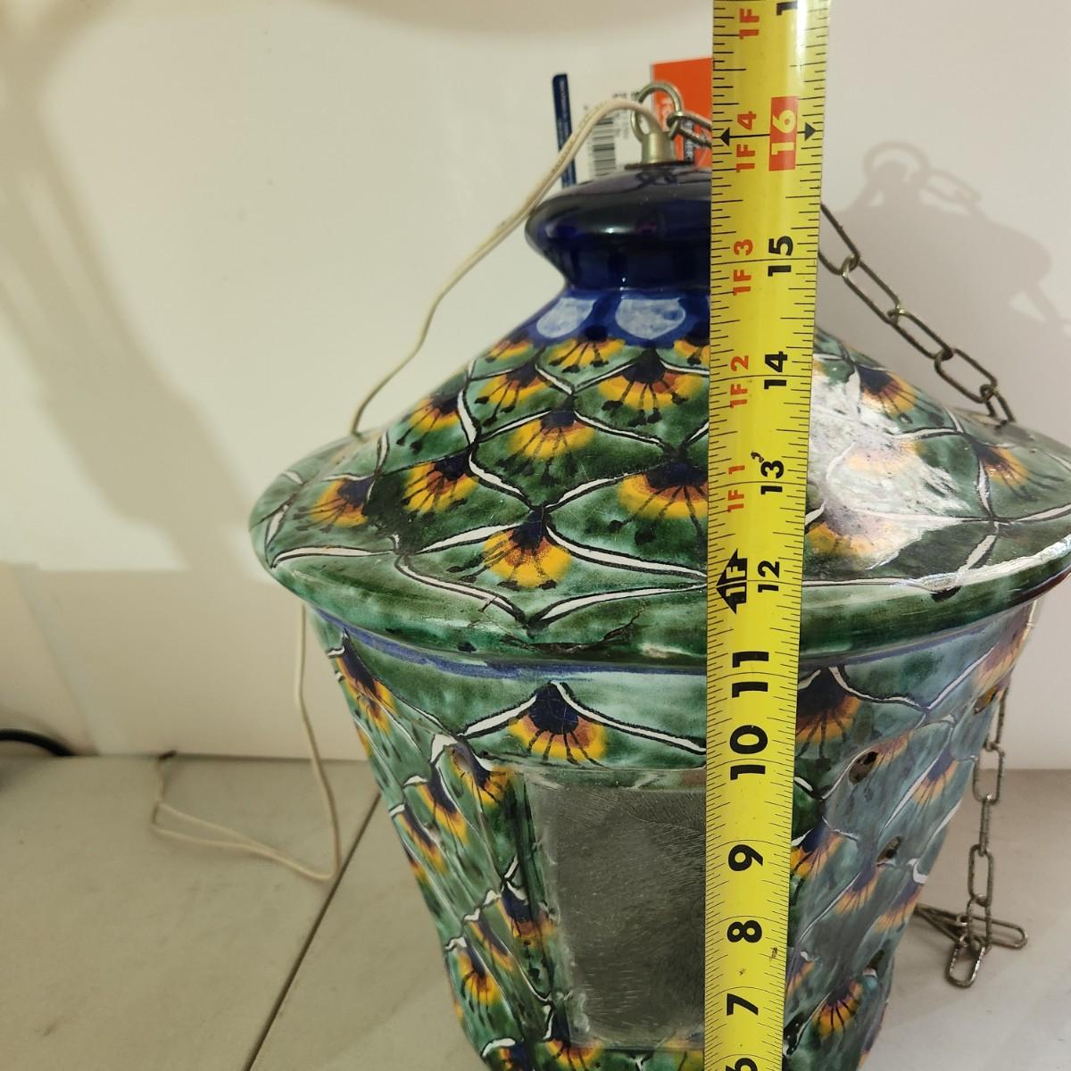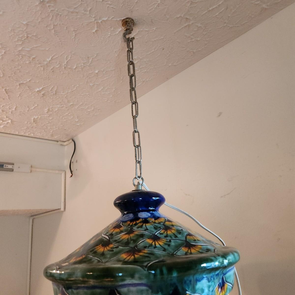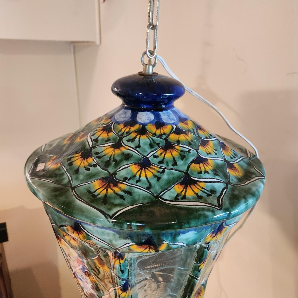 Vintage Hand Painted Ceramic & Glass Hanging Lamp