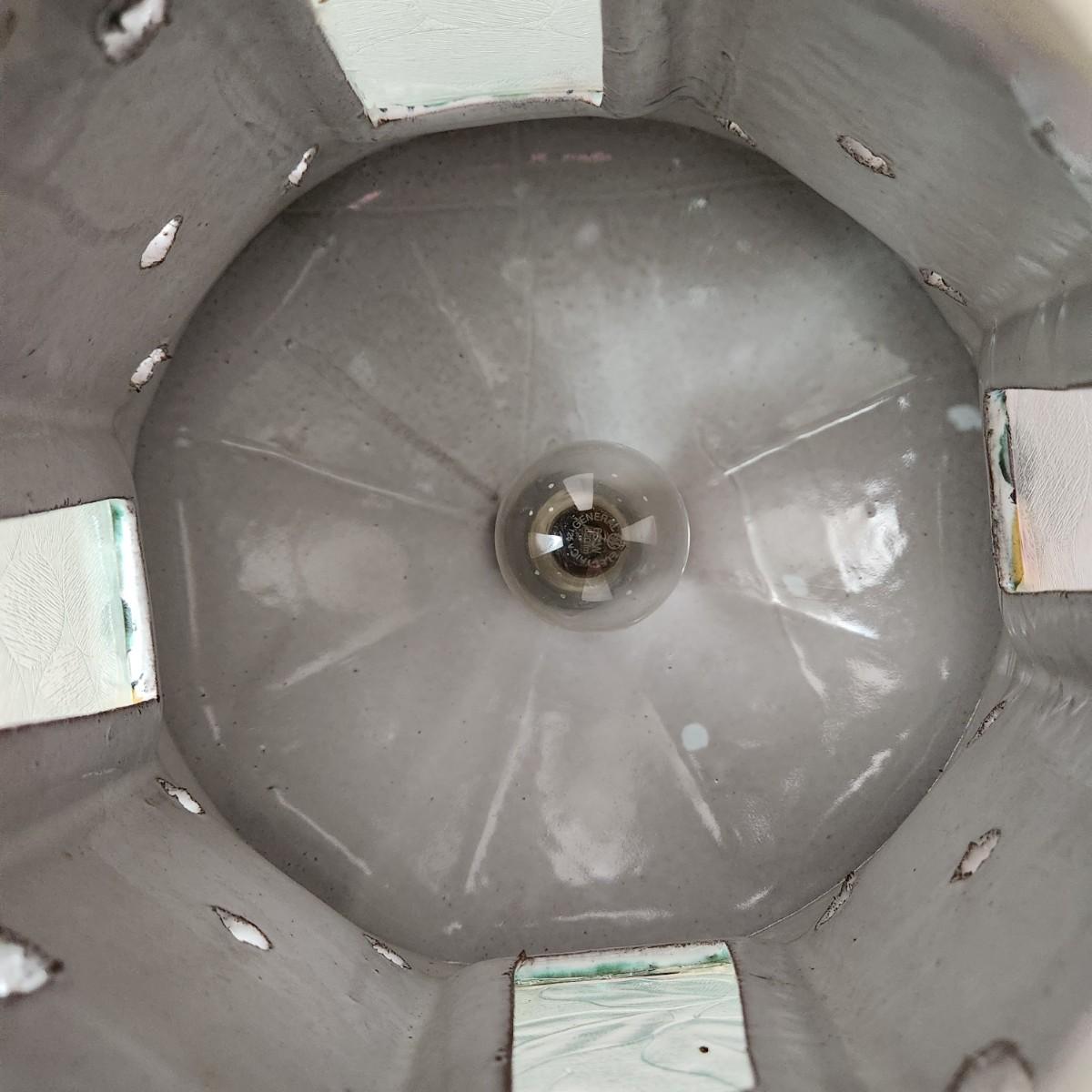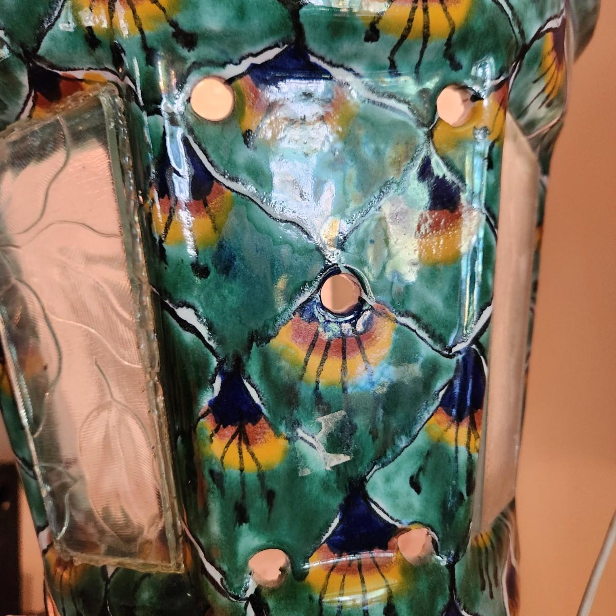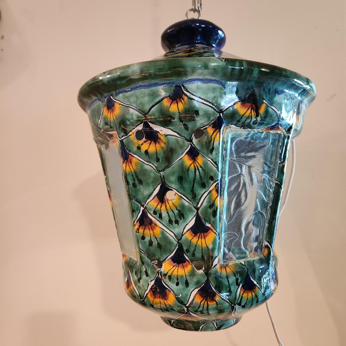 Vintage Hand Painted Ceramic & Glass Hanging Lamp