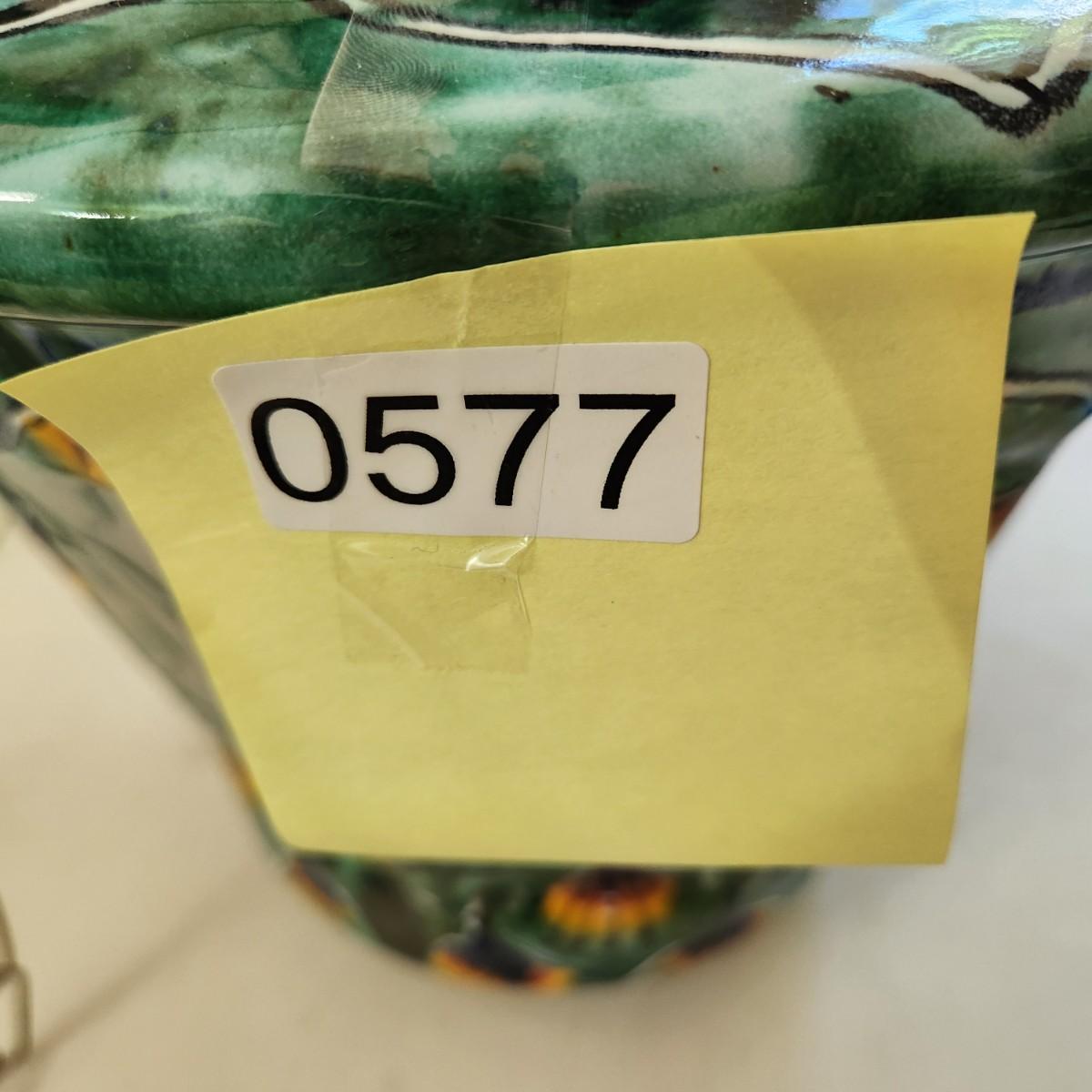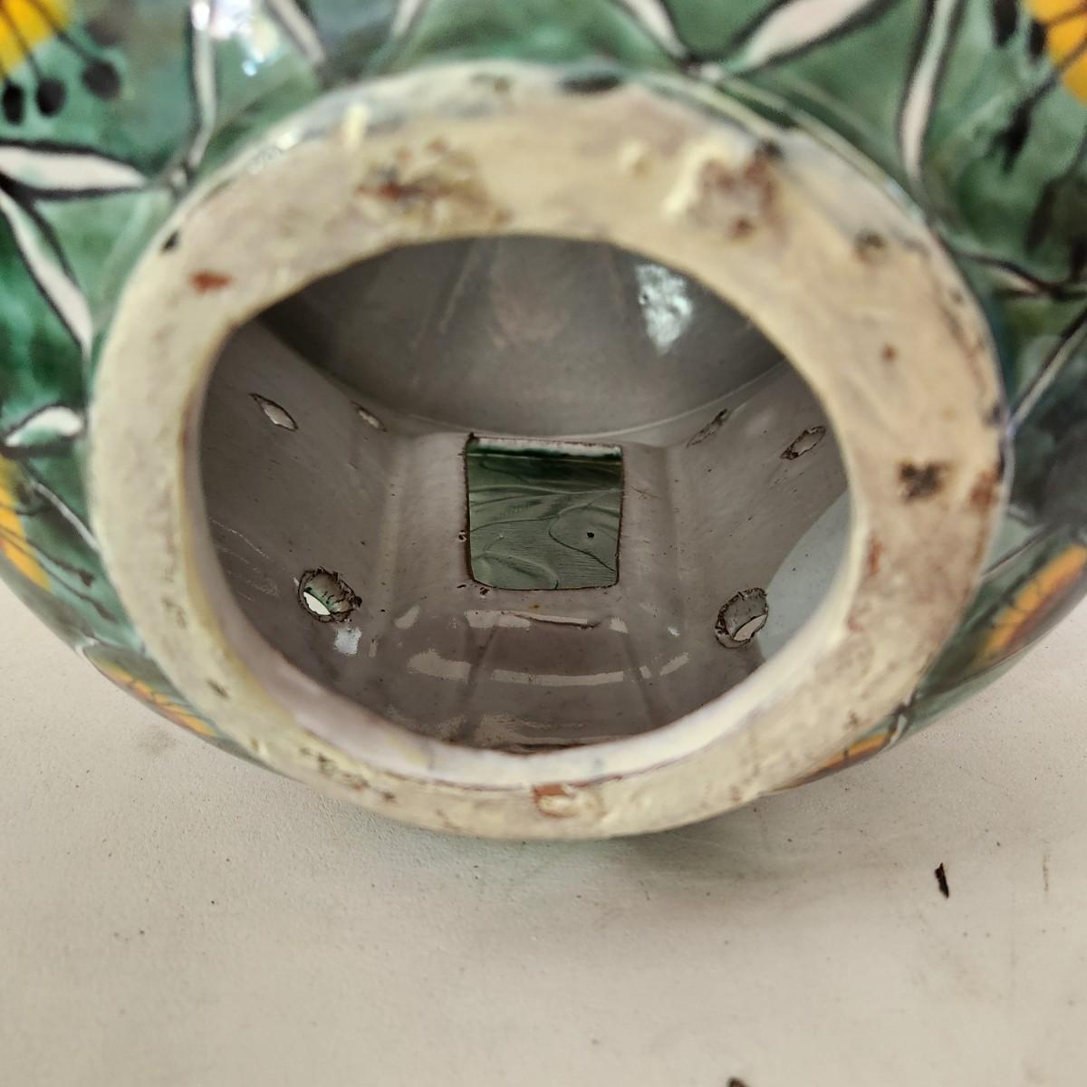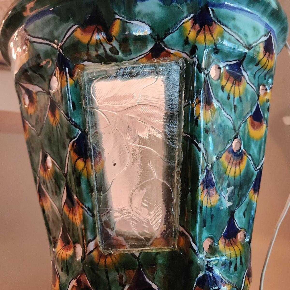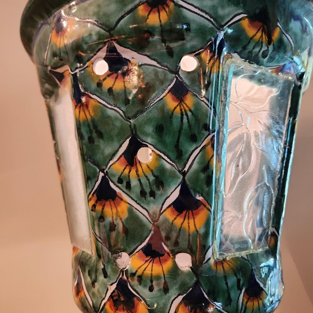 Vintage Hand Painted Ceramic & Glass Hanging Lamp