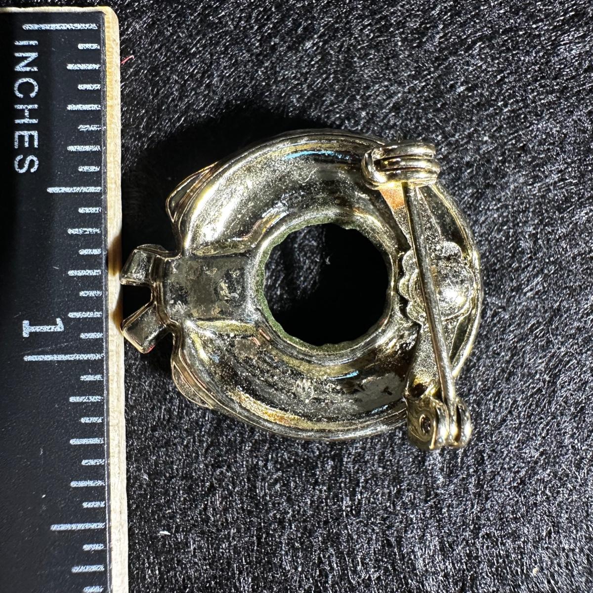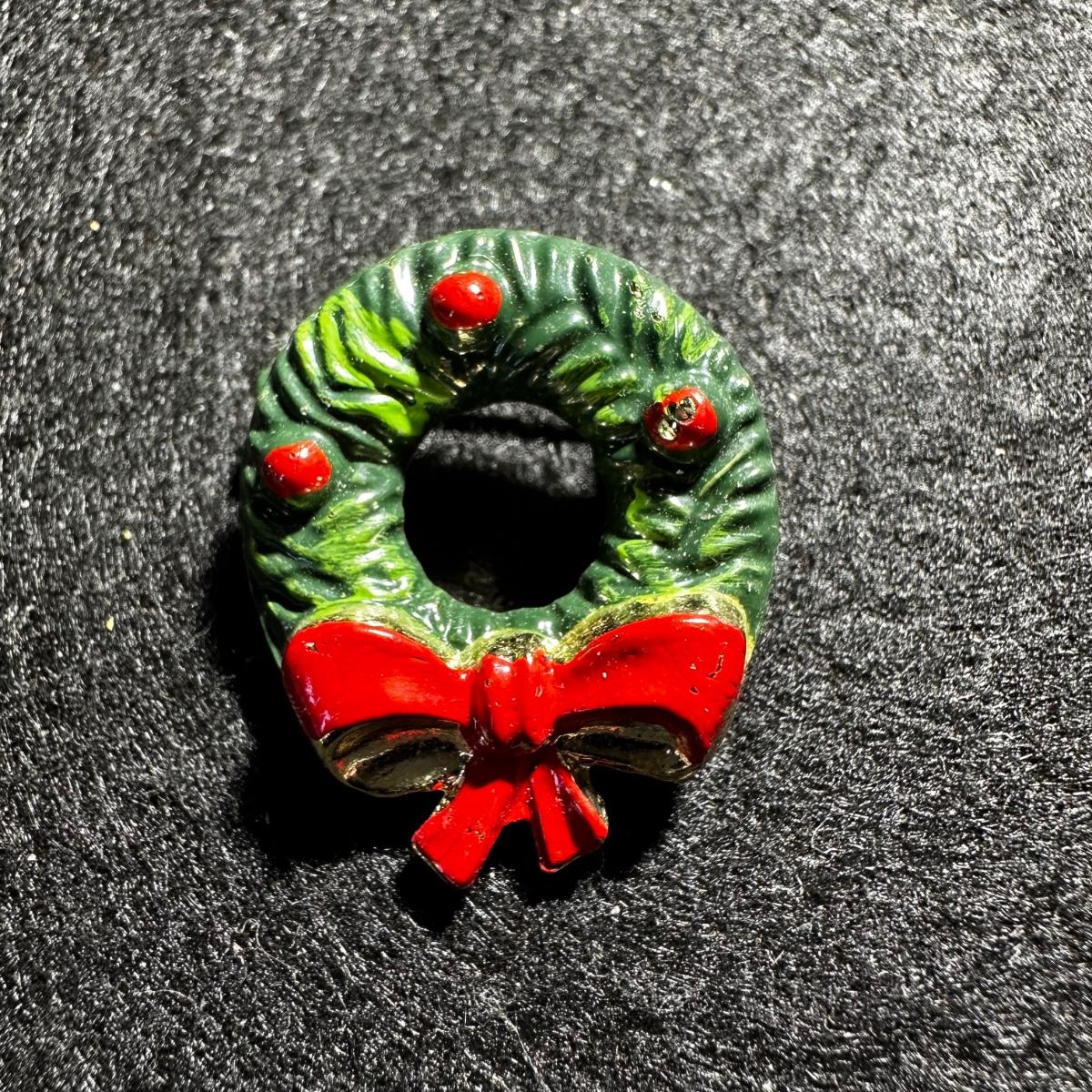 Vintage hand painted Christmas wreath brooch