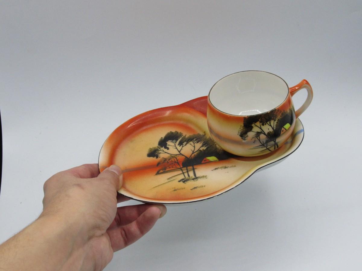 Vintage Hand Painted Made in Japan Porcelain Snack Luncheon Plate Set