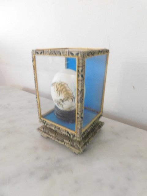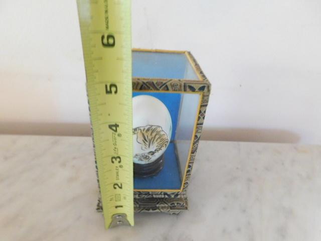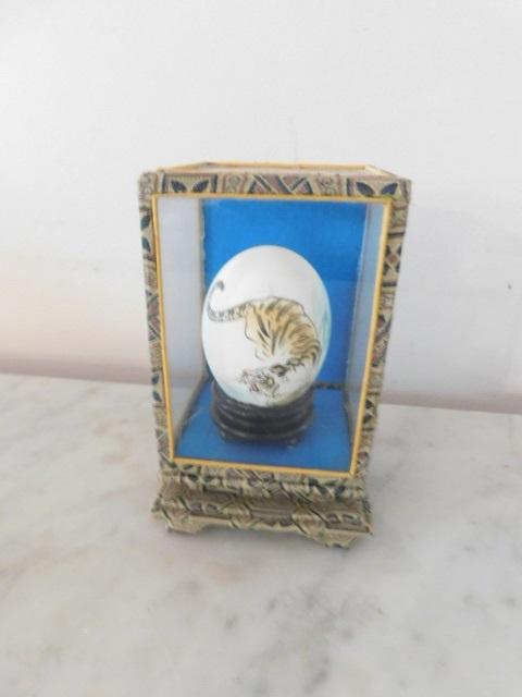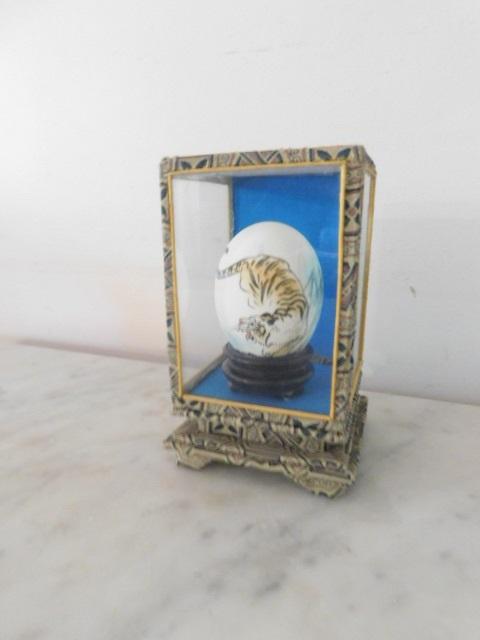 Vintage Hand Painted Egg with Tiger Set inside Display Case