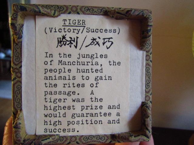 Vintage Hand Painted Egg with Tiger in Display Case. Symbolizes victory and success.