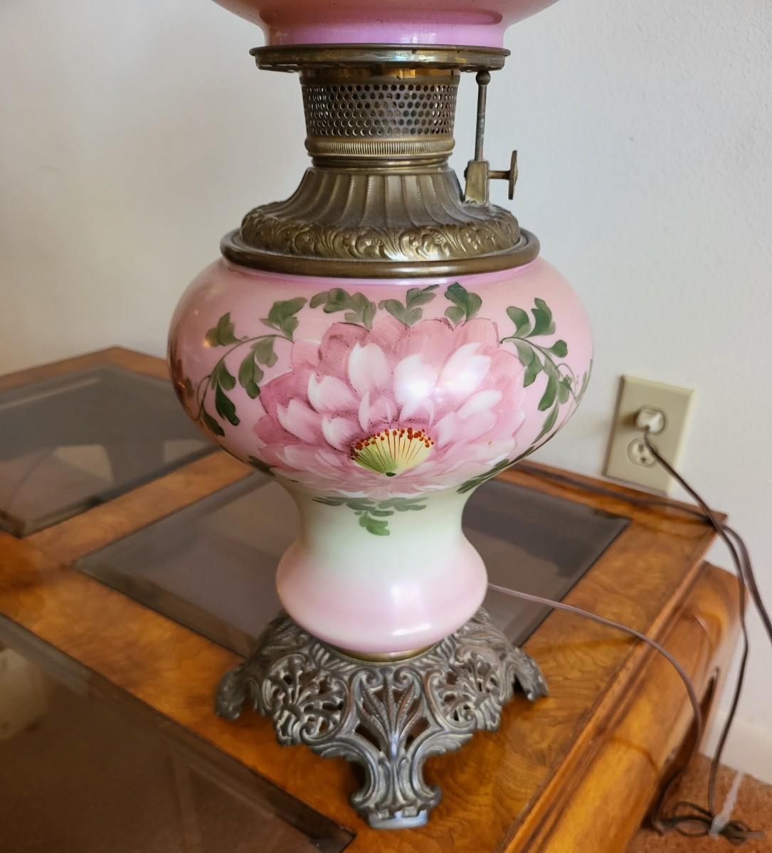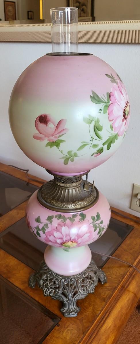 Vintage Hand Painted Floral " Gone with The Wind "  Lamp