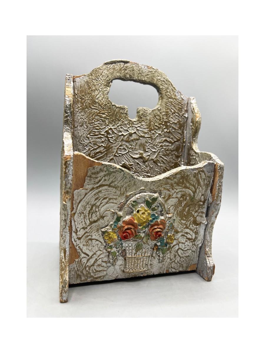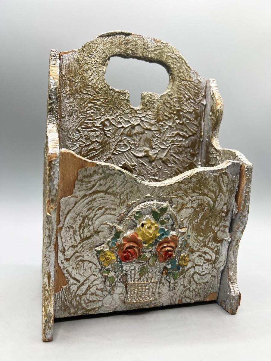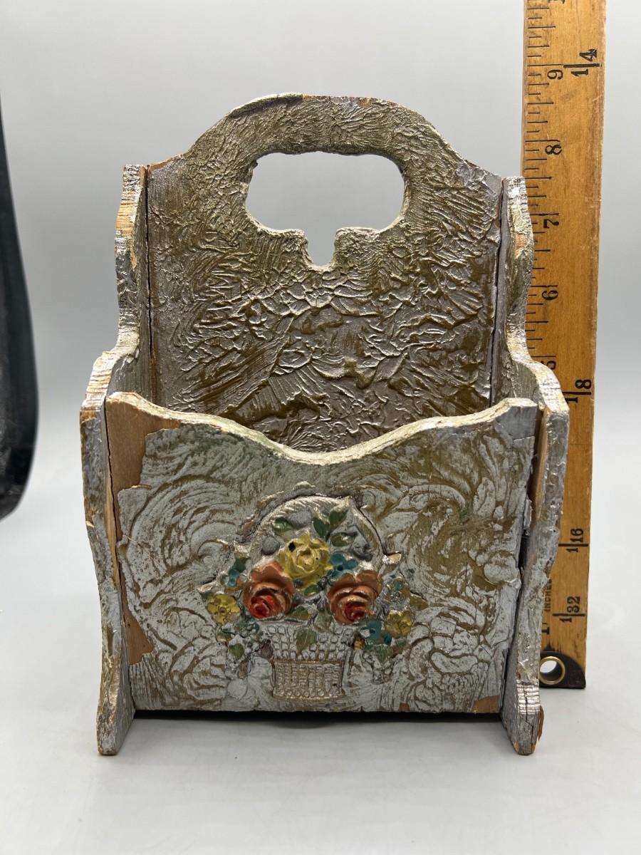 Vintage Hand Painted Flower Bouquet Wooden Envelope Organizer