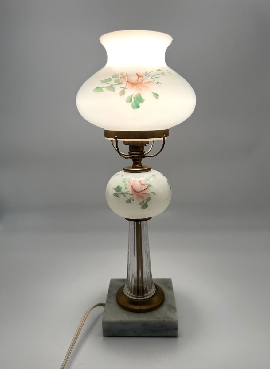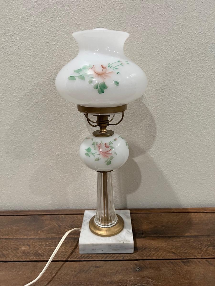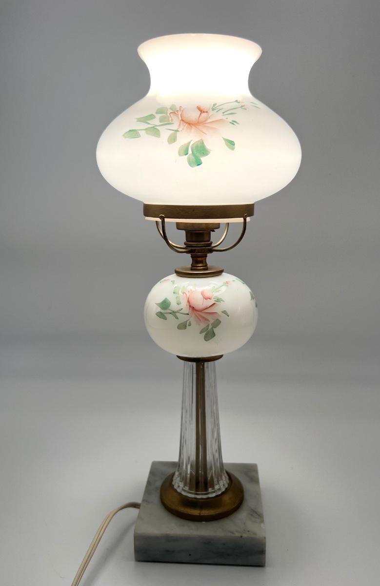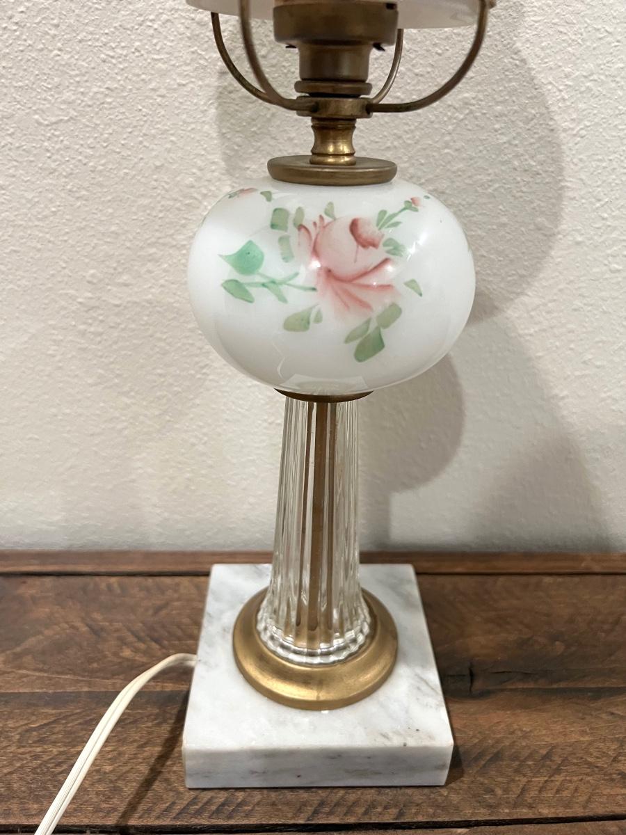 Vintage Hand Painted Lamp With Crystal/Marble Base