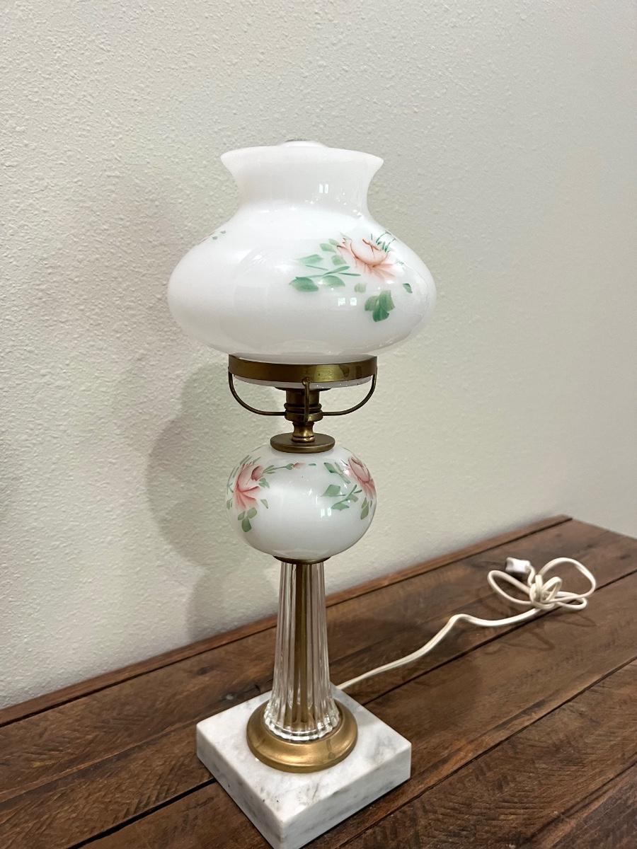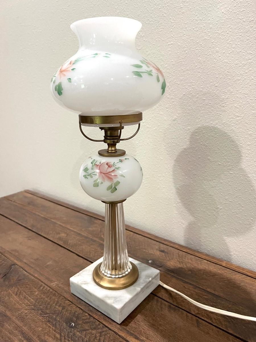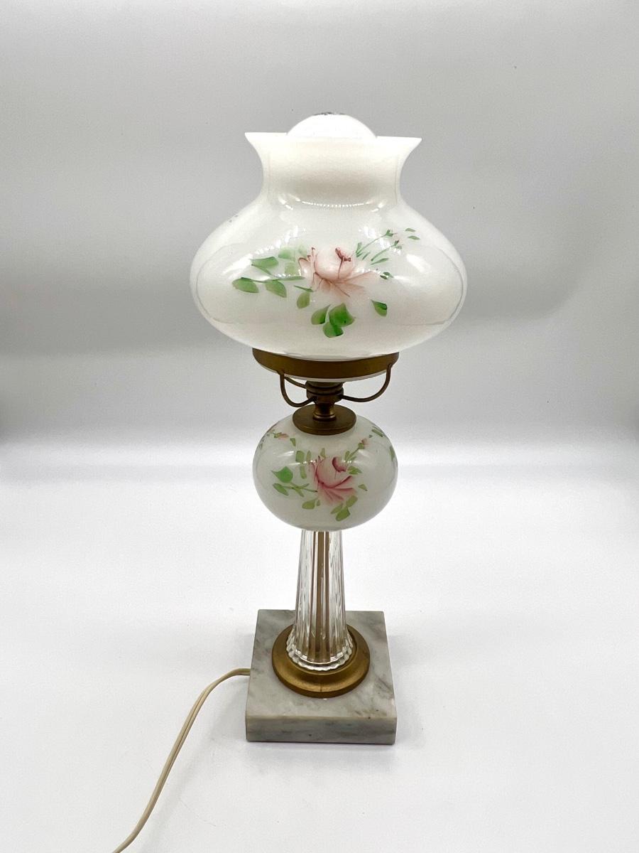 Vintage Hand Painted Lamp With Crystal/Marble Base
