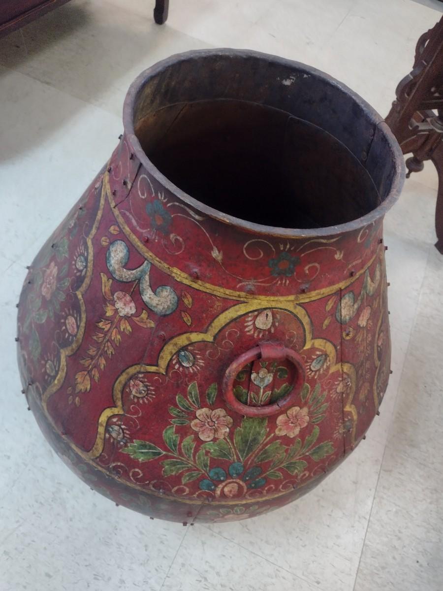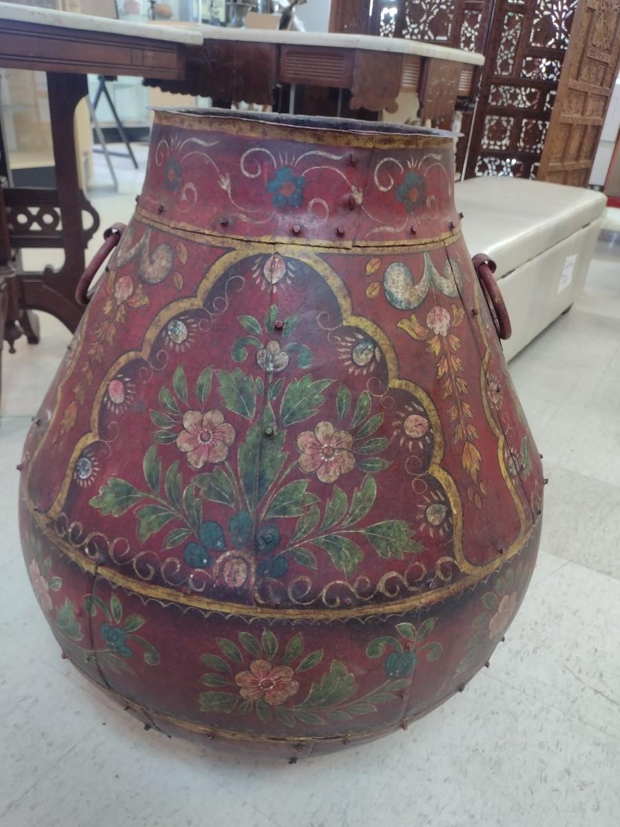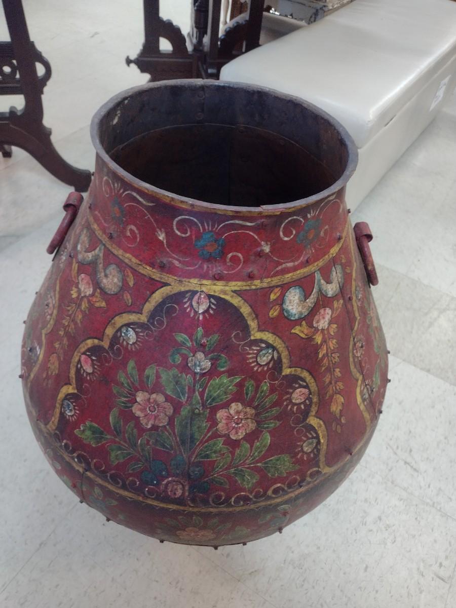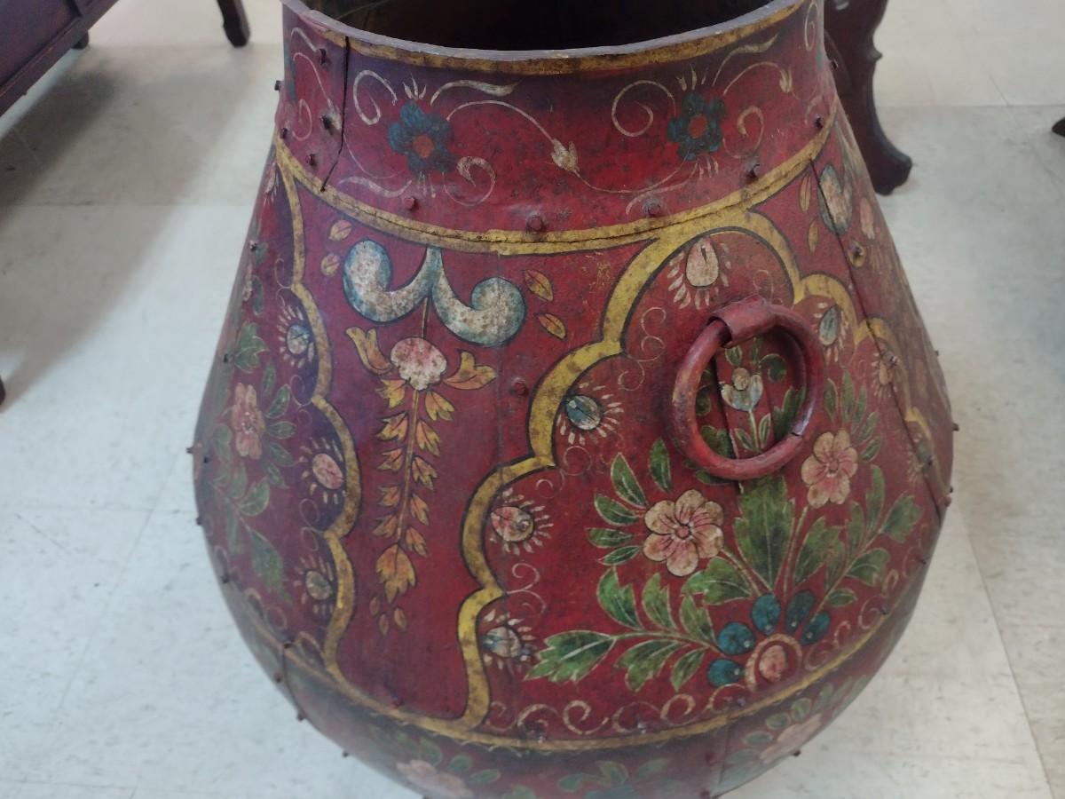 Vintage Hand Painted Large Metal Tall Floor Planter