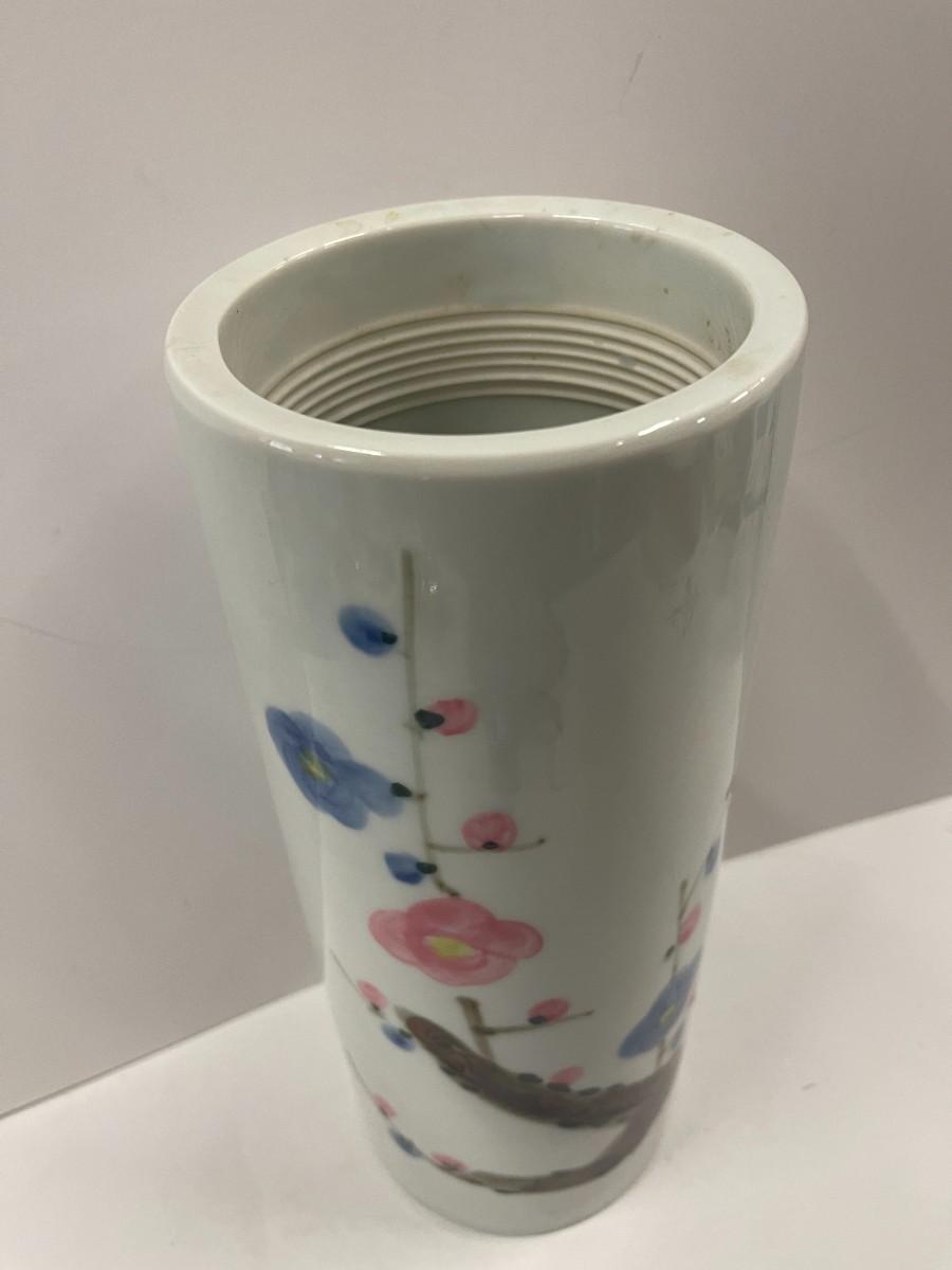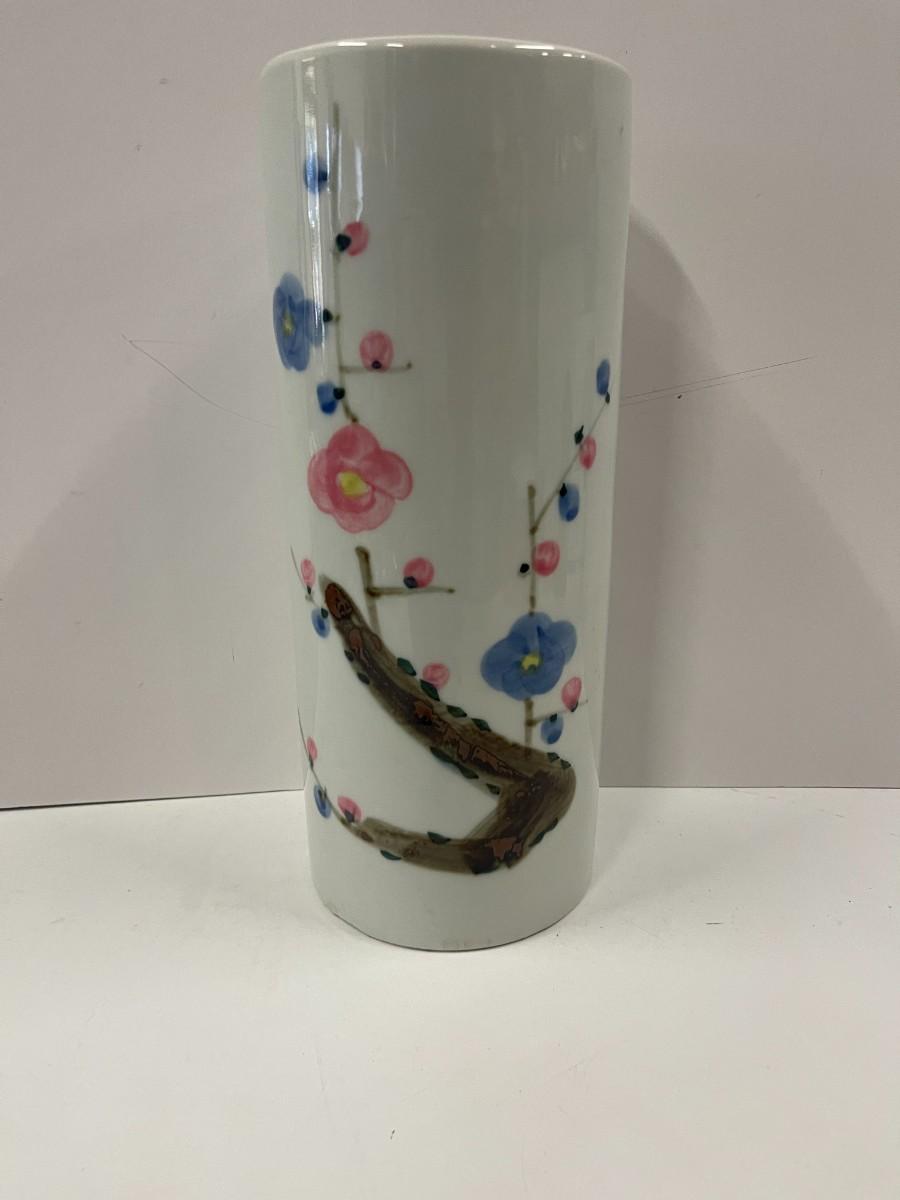 Vintage hand painted MCI Japan cylindrical vase. 11 1/2" x 4 3/4". Very good condition.
