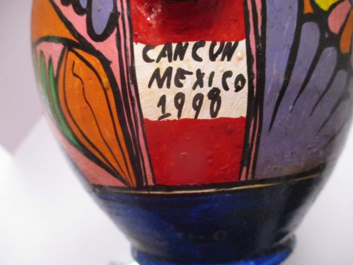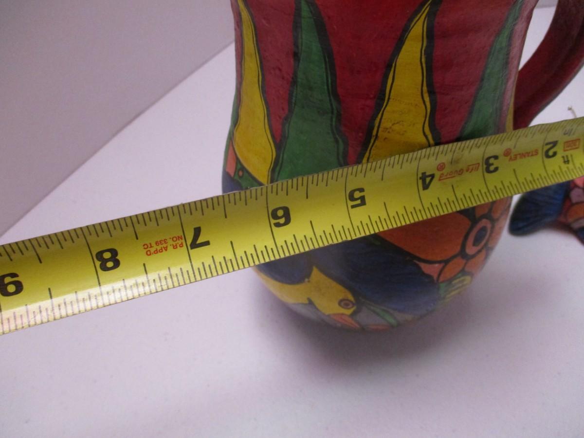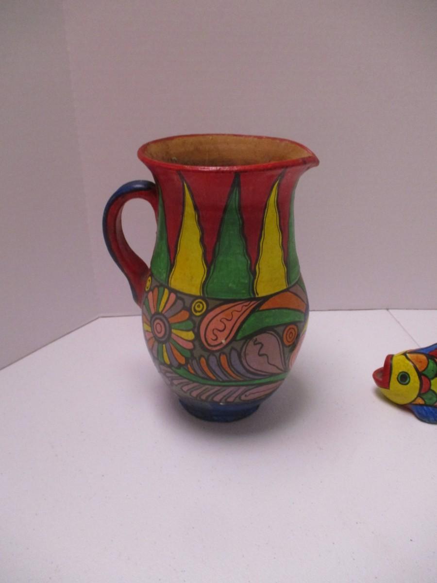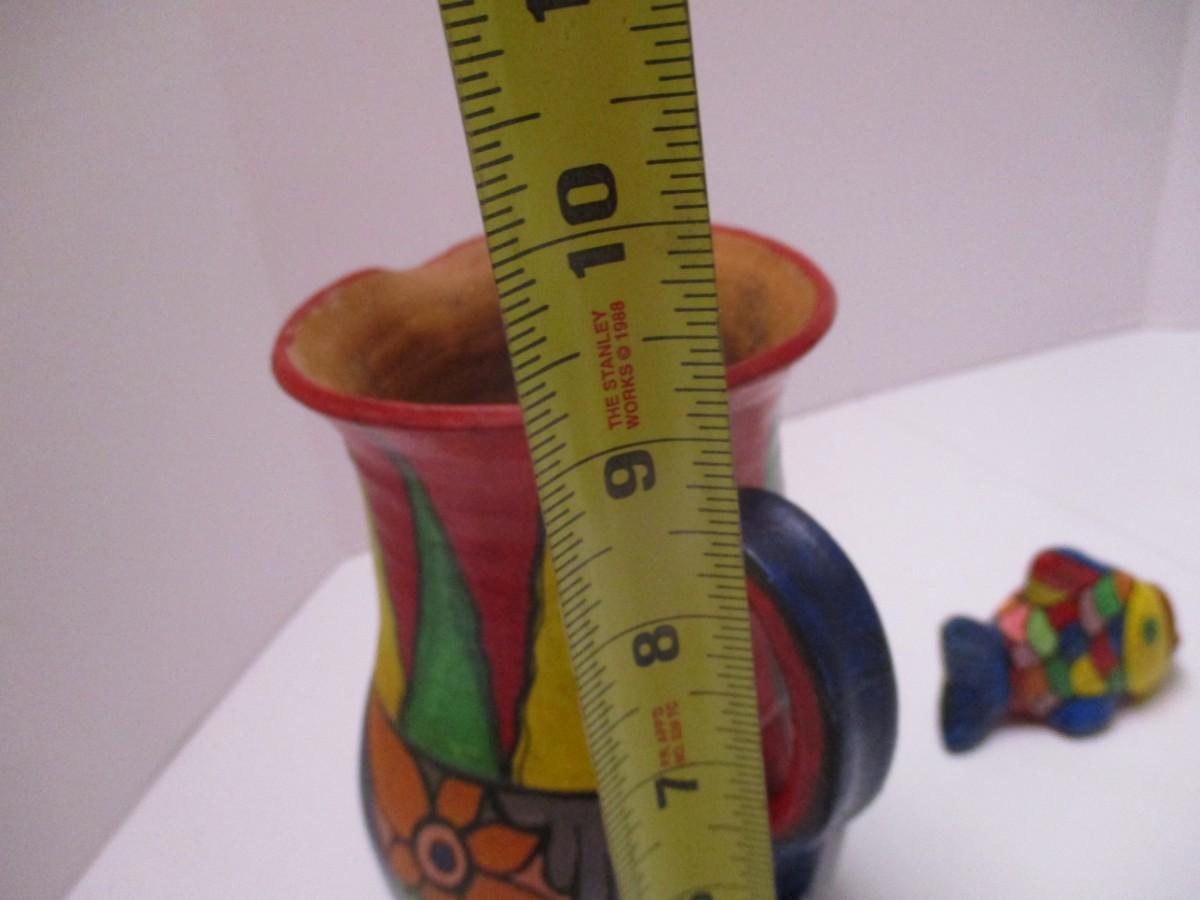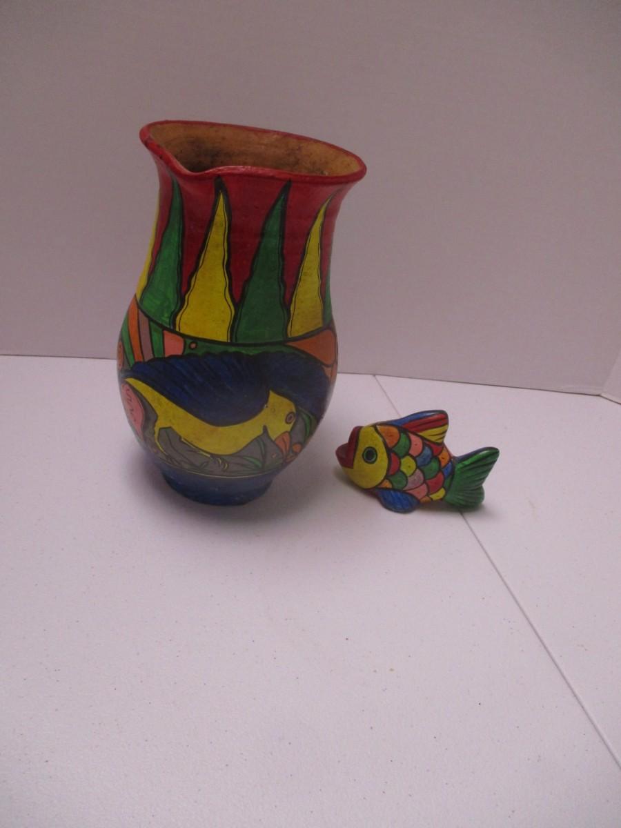 Vintage Hand Painted Mexican Folk Art Clay Potter Vase & Fish (K)