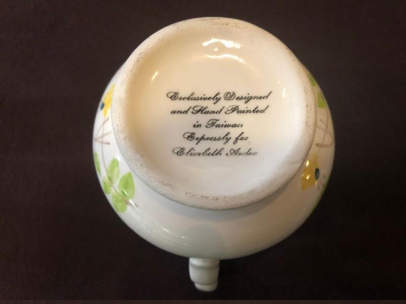 EXCLUSIVELY DESIGNED & HAND PAINTED EXPRESSLY FOR ELIZABETH ARDEN, MADE IN TAWAIN 1970'S POTTERY, 6 3/4" x 6 3/4" BOWL