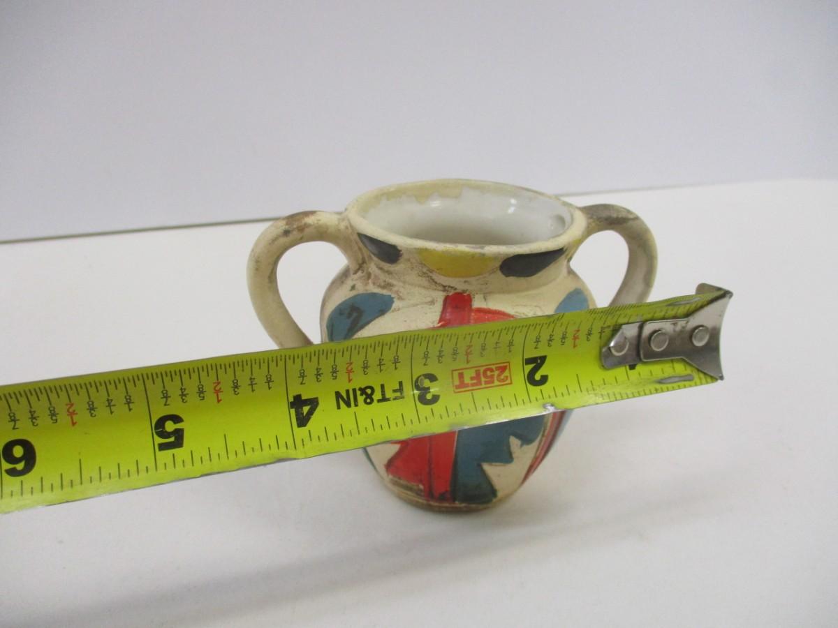 Vintage Hand Painted Native American Style 2 Handled Vase