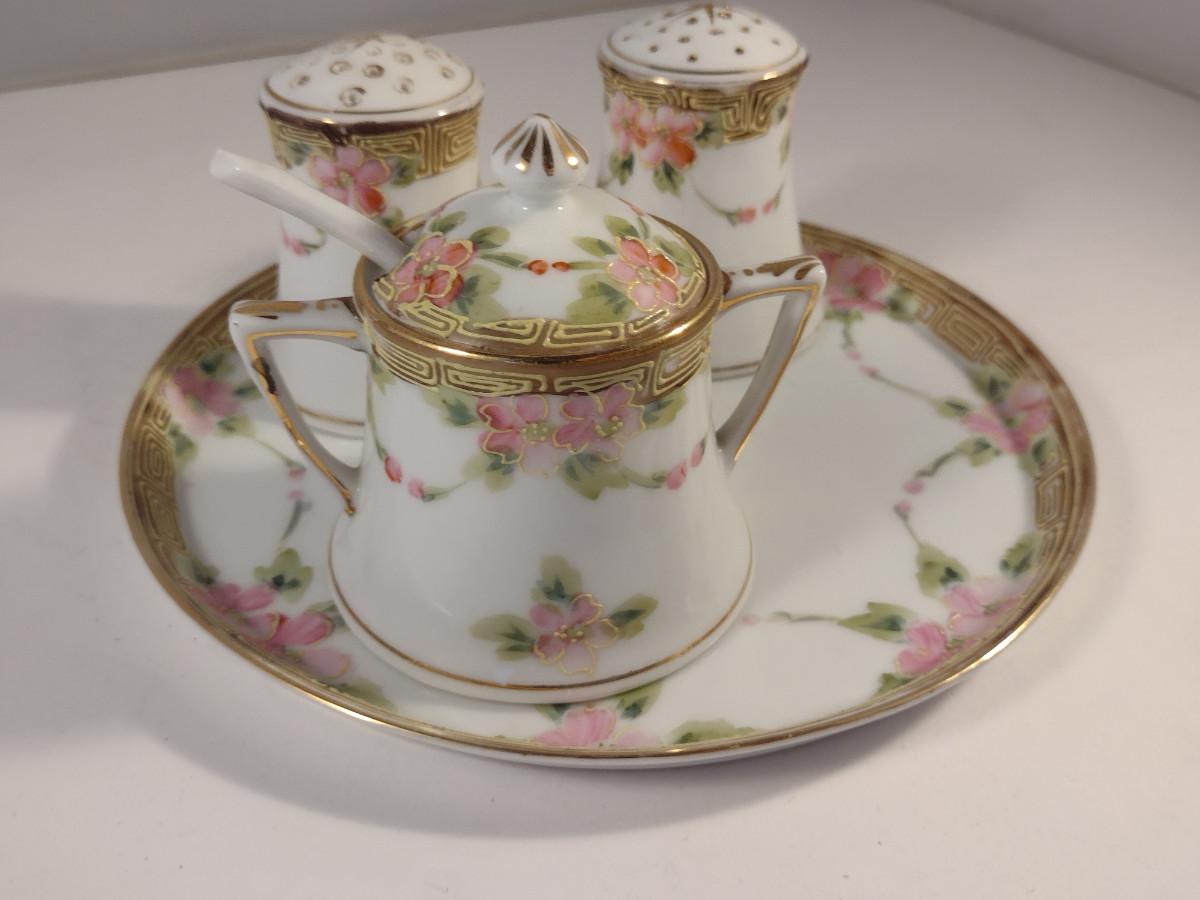 Vintage Hand Painted Nippon Condiment Set- Seven Pieces