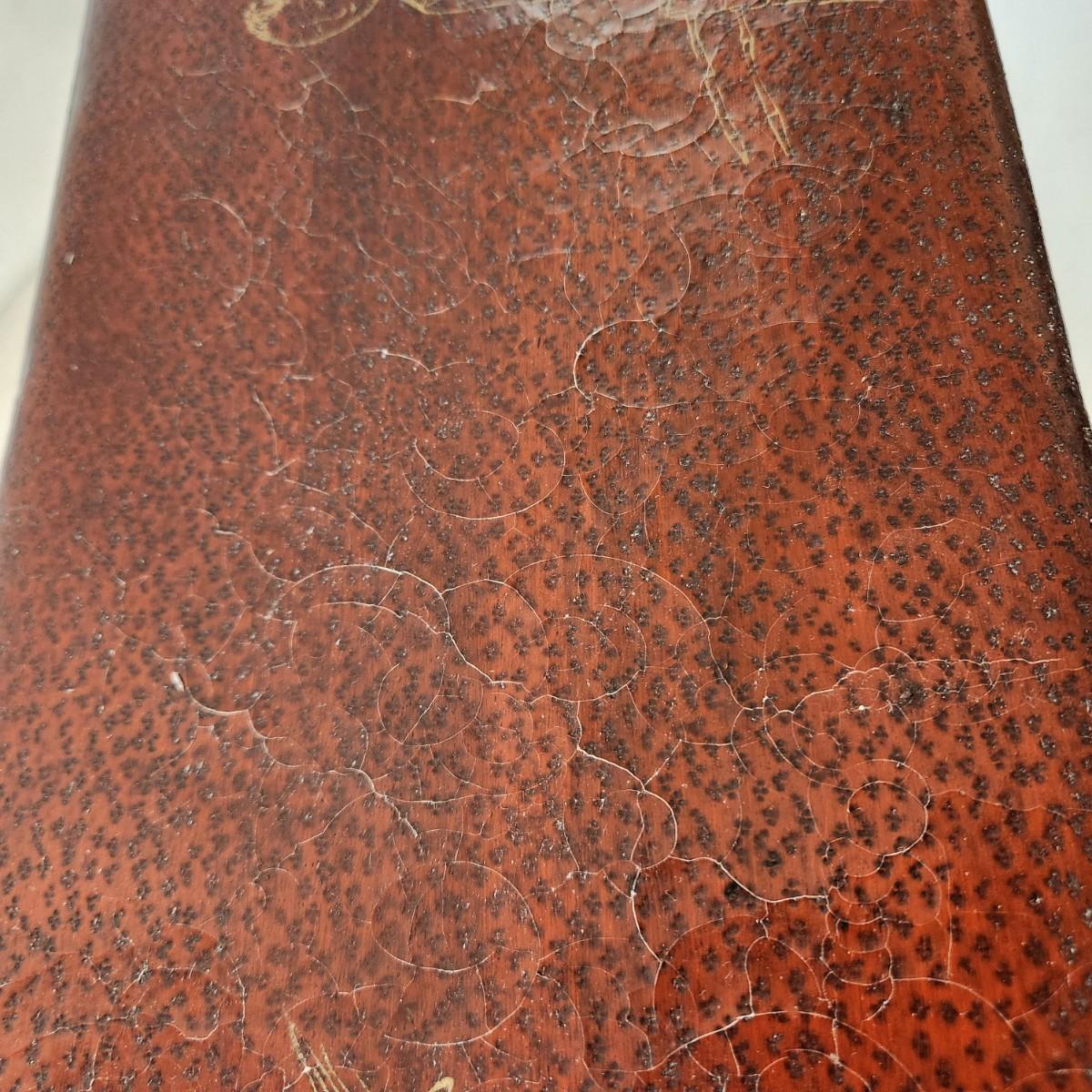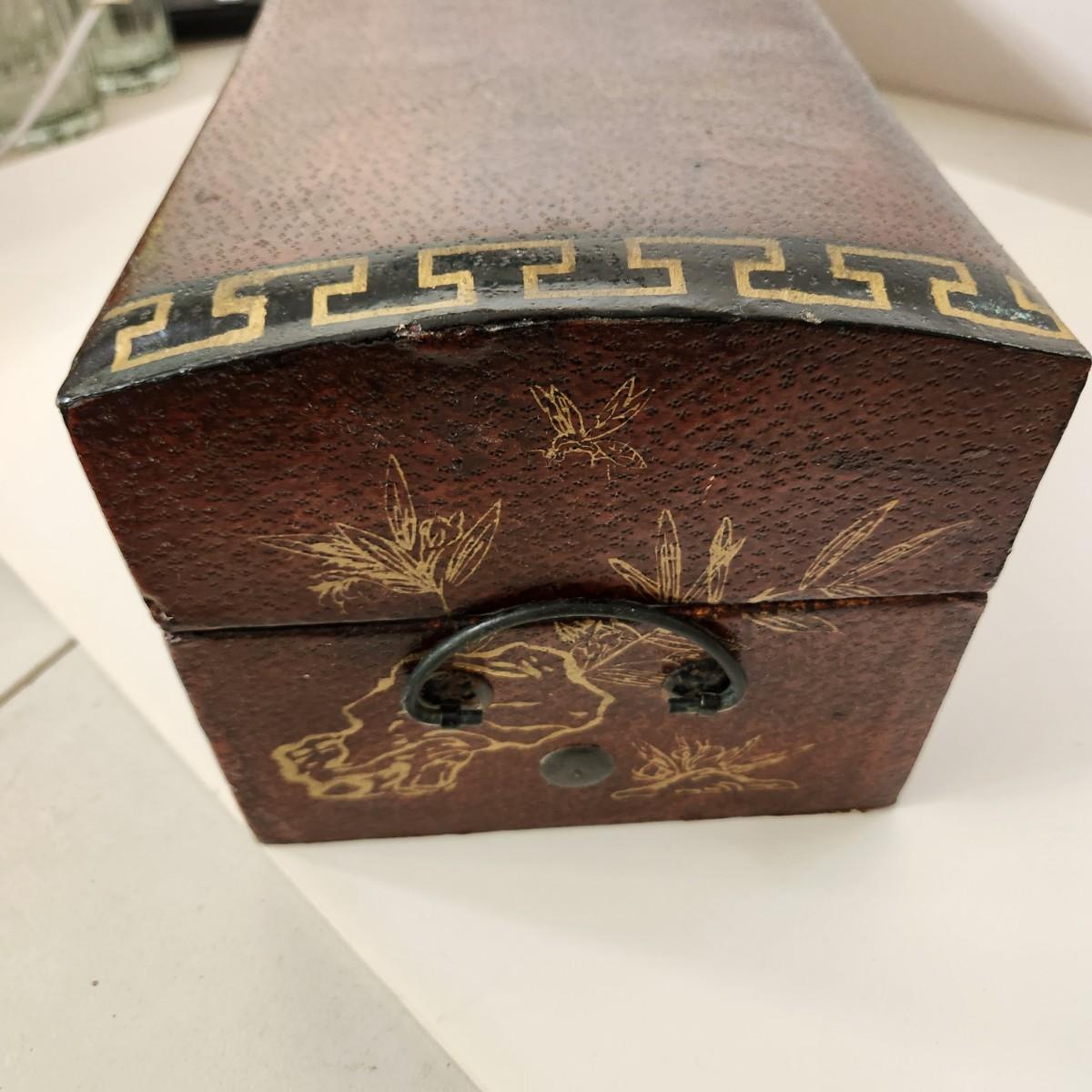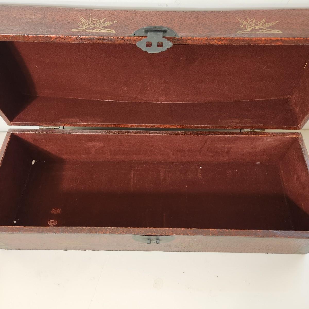 Vintage Hand painted on Leather Asian Pillow Box 21x7x7