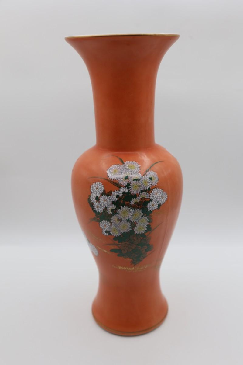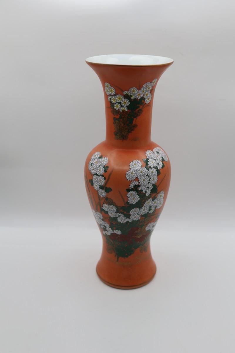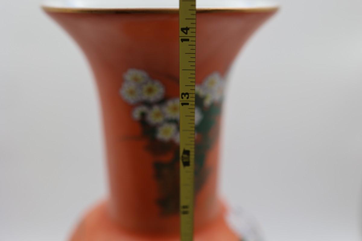 Vintage Hand Painted Orange and Floral Vase