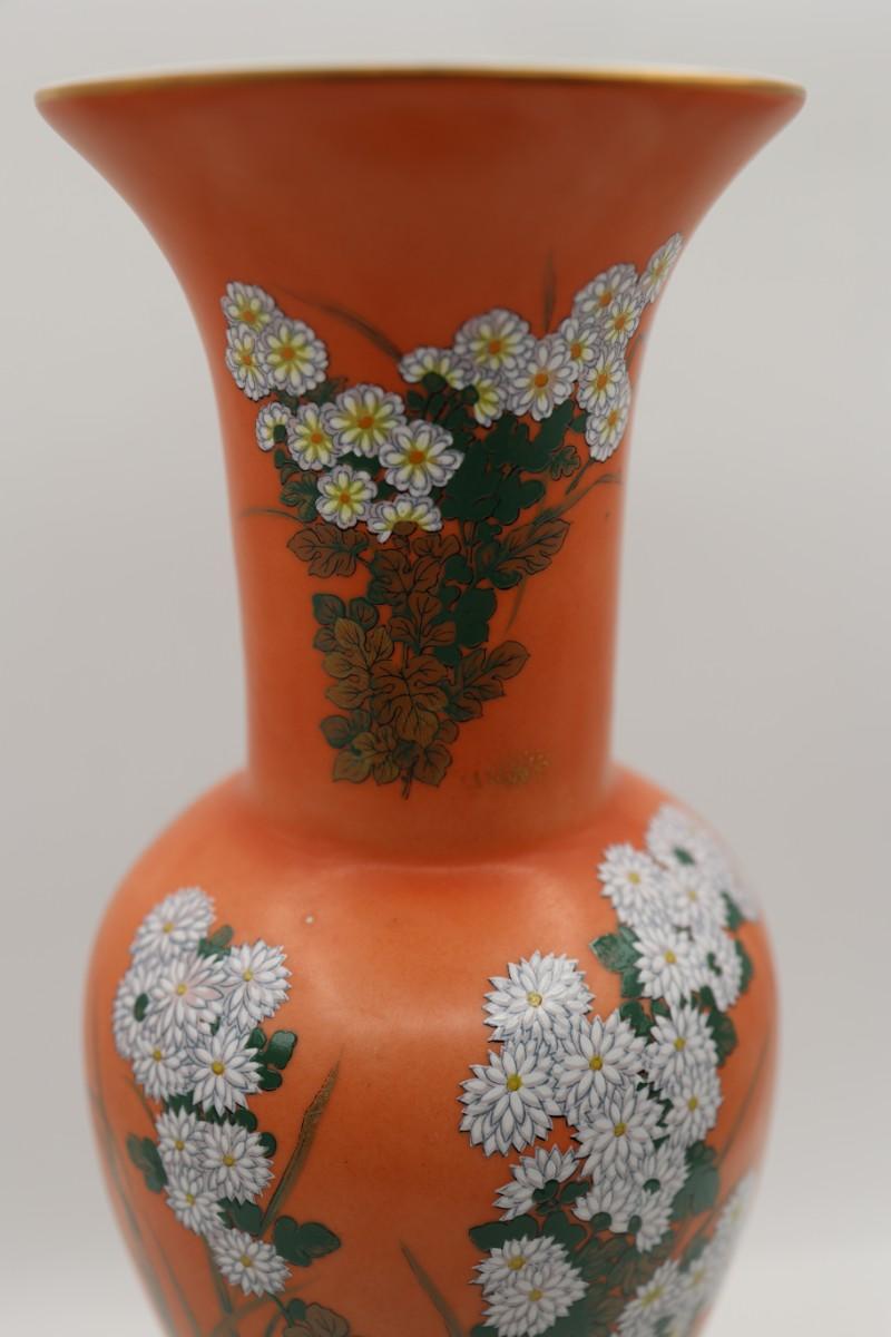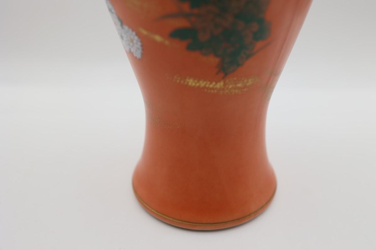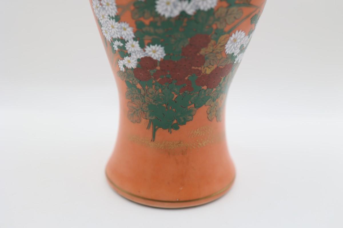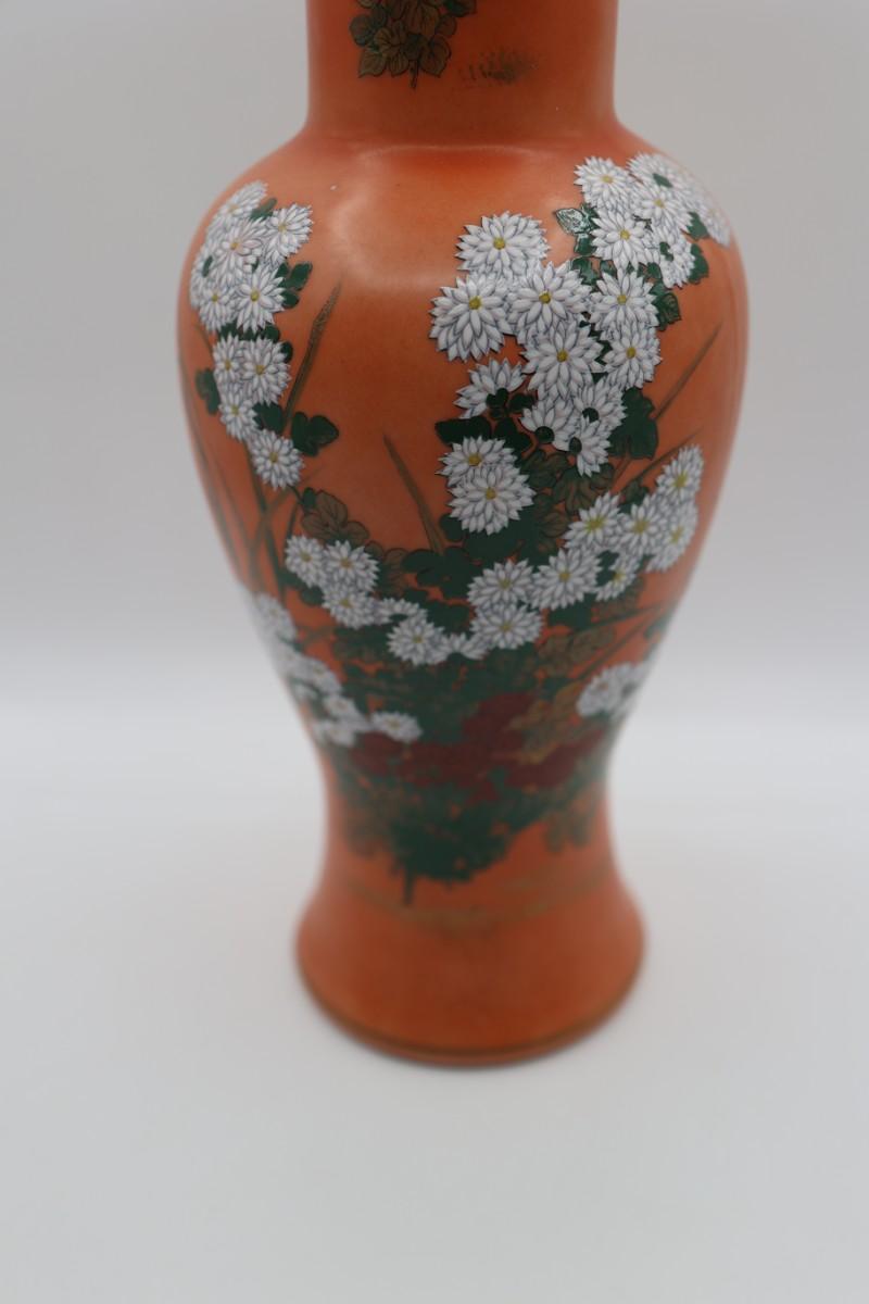 Vintage Hand Painted Orange and Floral Vase
