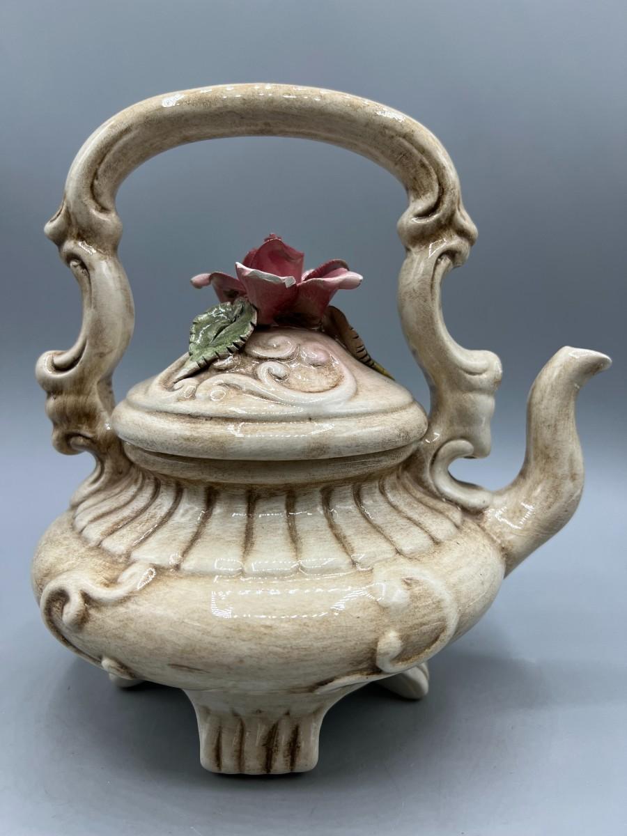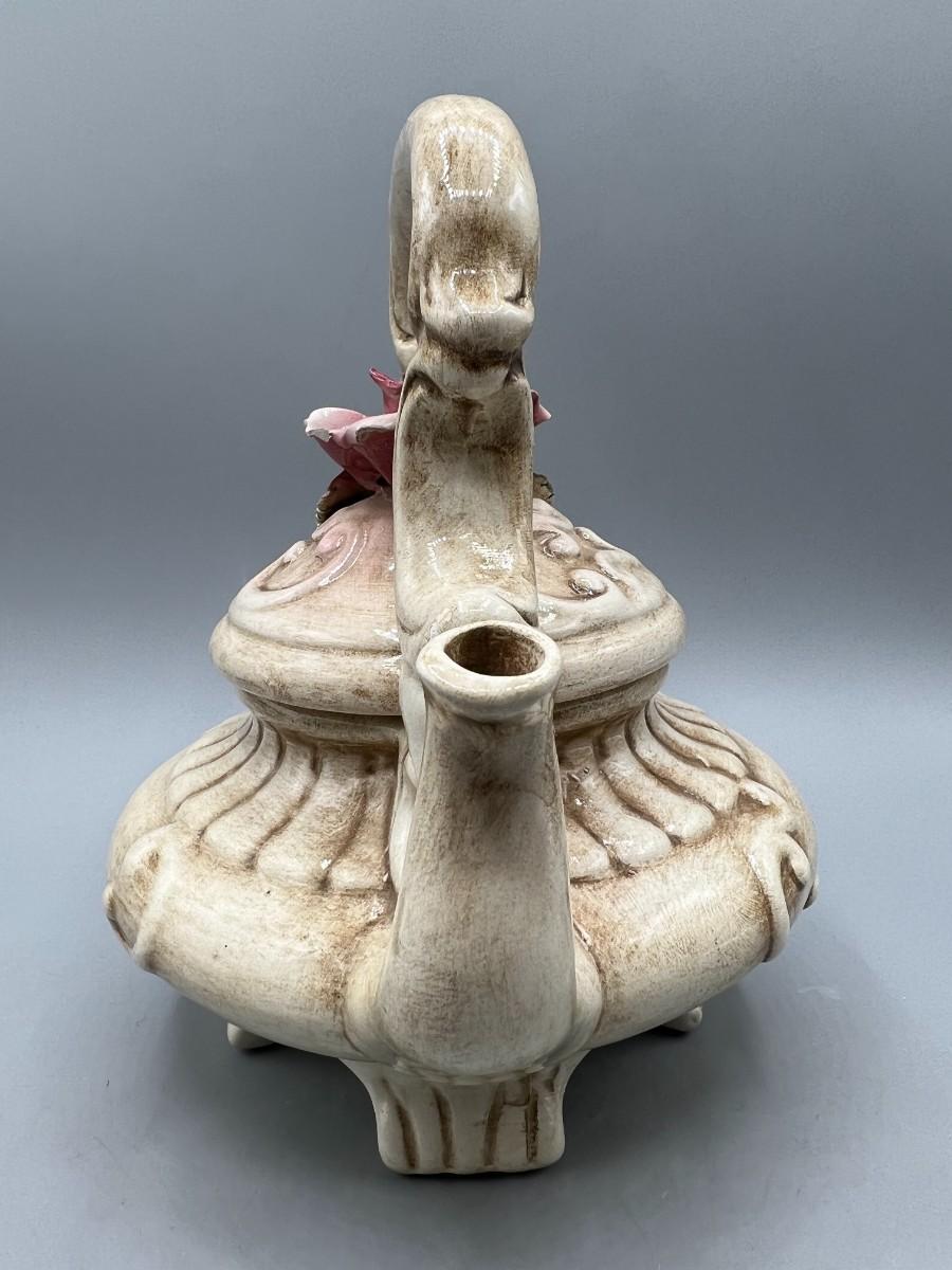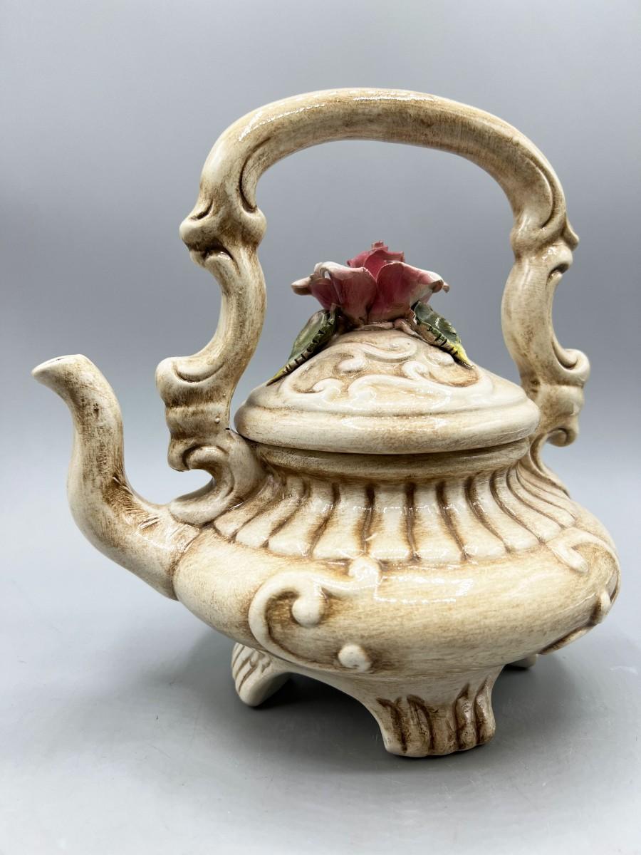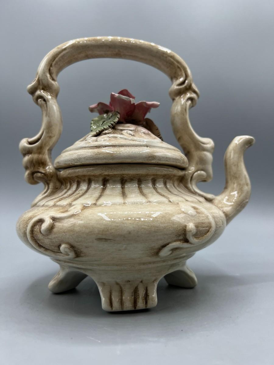 Vintage Hand Painted Ornate Capodimonte Pottery Art Blooming Flower Teapot