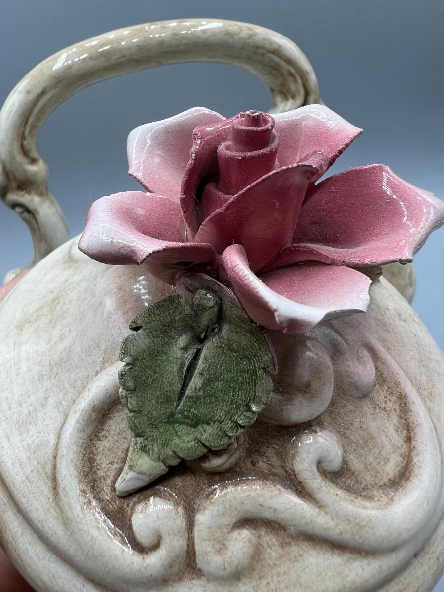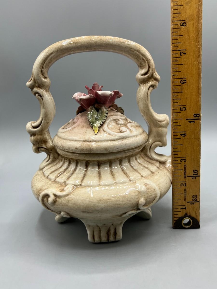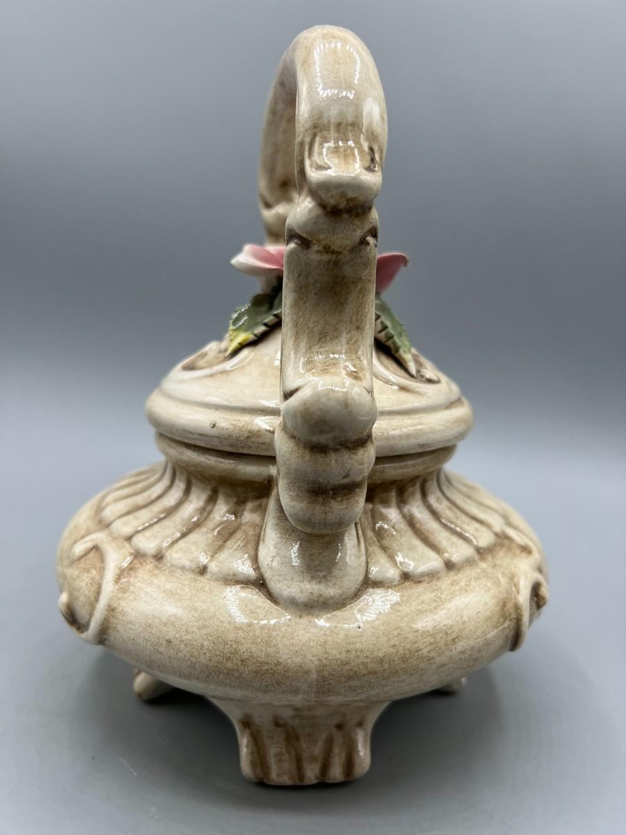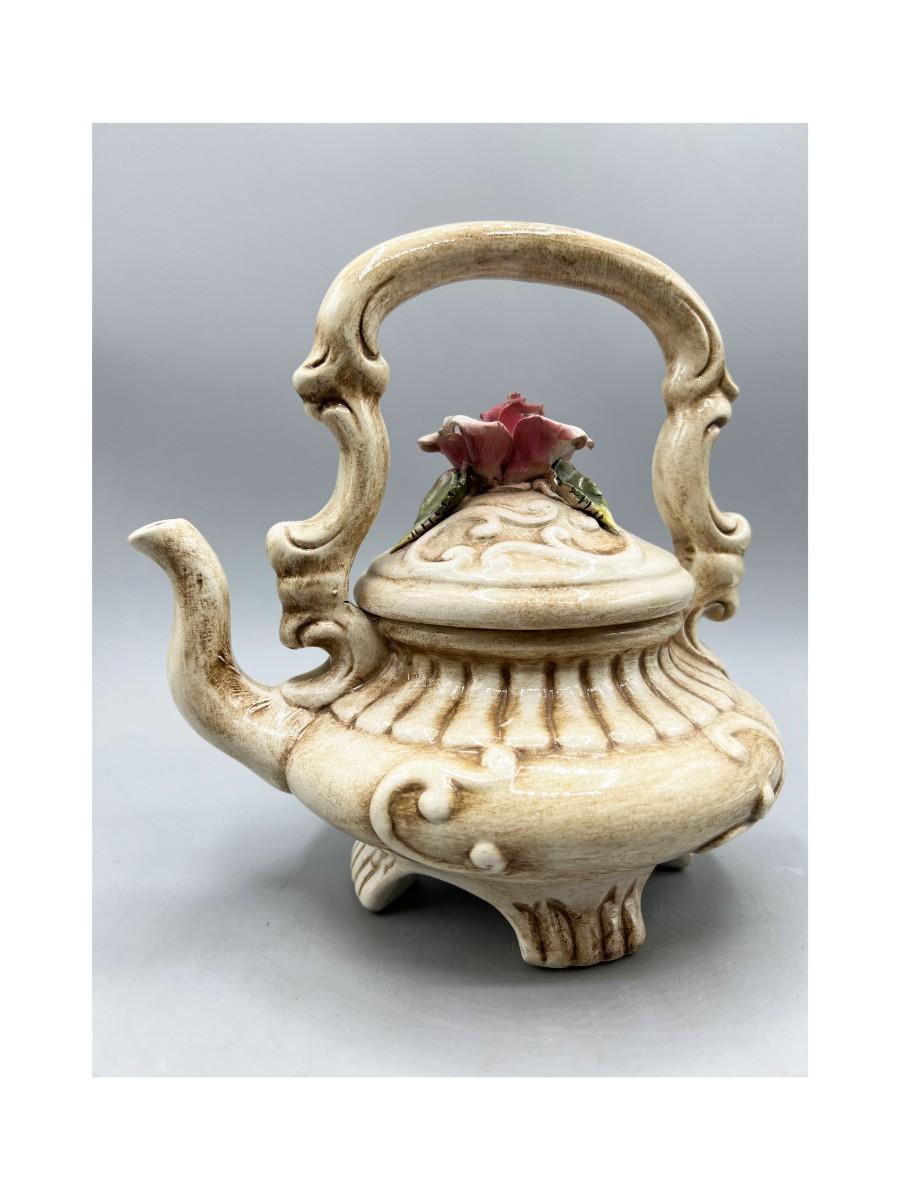 Vintage Hand Painted Ornate Capodimonte Pottery Art Blooming Flower Teapot