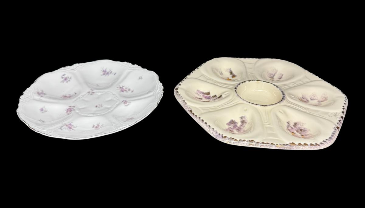 Includes two hand painted oyster plates. One is signed by the artist and has painted embellishments. The other has hand painted flowers. No obvious chips or cracks. Measurement of largest: 10.5” Diameter. Pre-auction estimate: $200-$300. [JL]