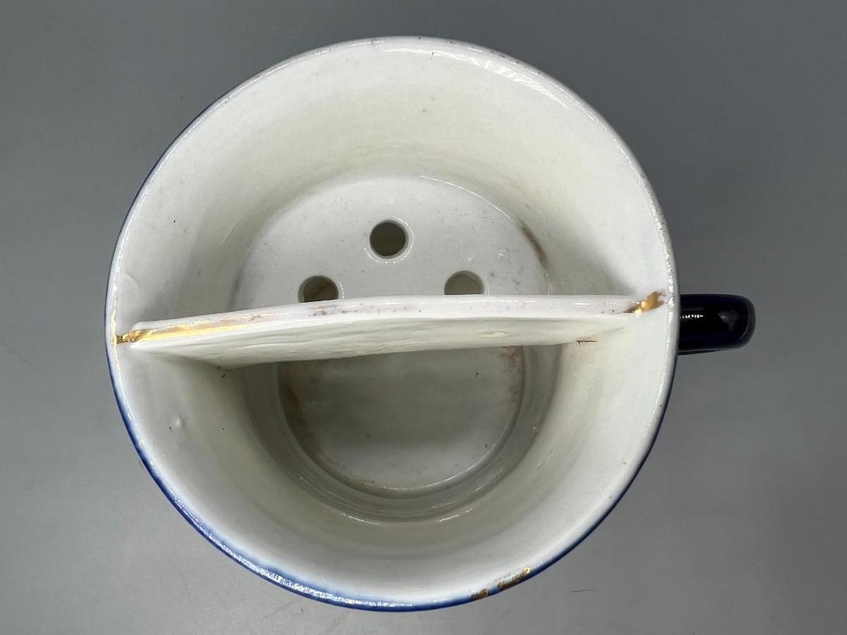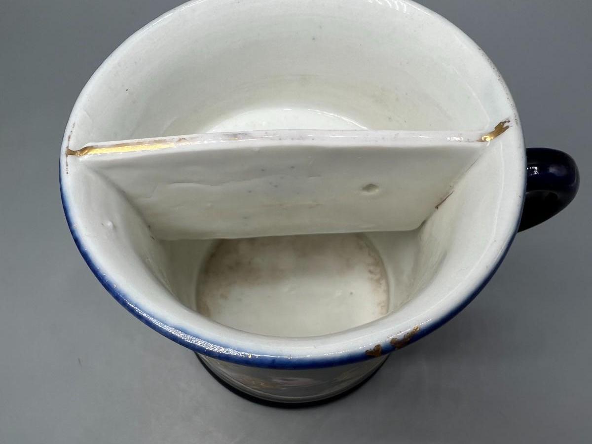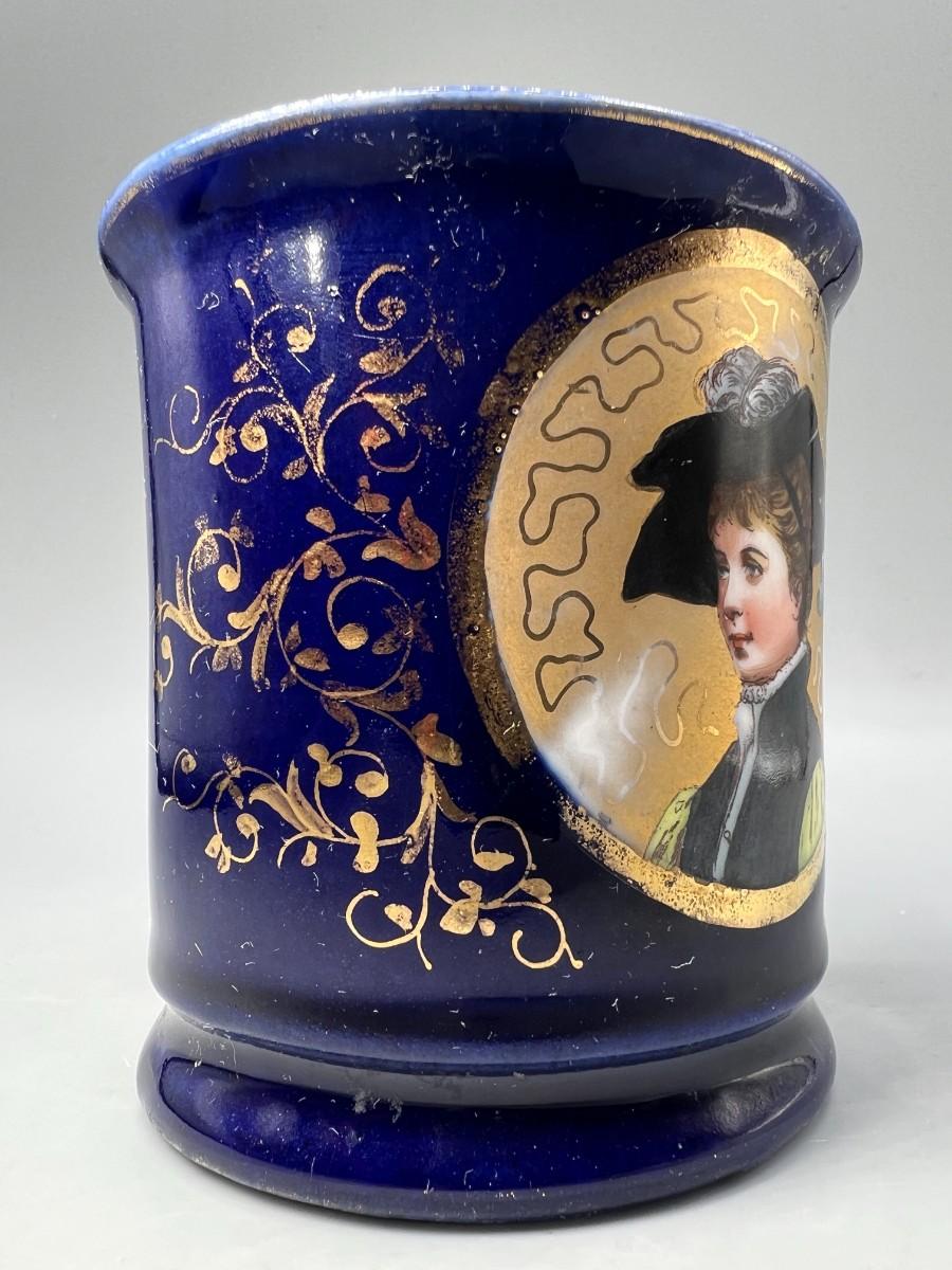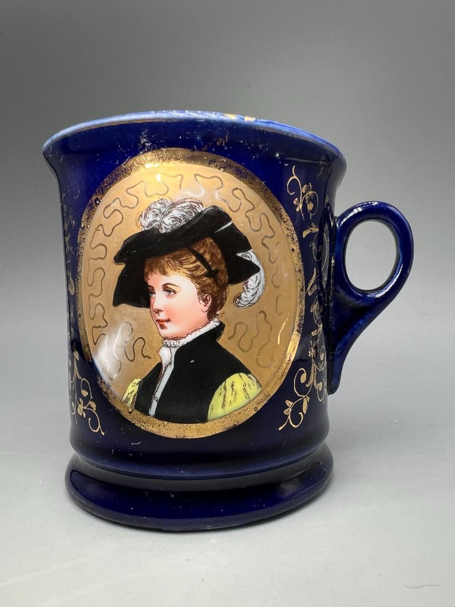 Vintage Shave Mug Hand Painted Porcelain Portrait Woman Hat Plume Gilt Shaving Mug mustache protector