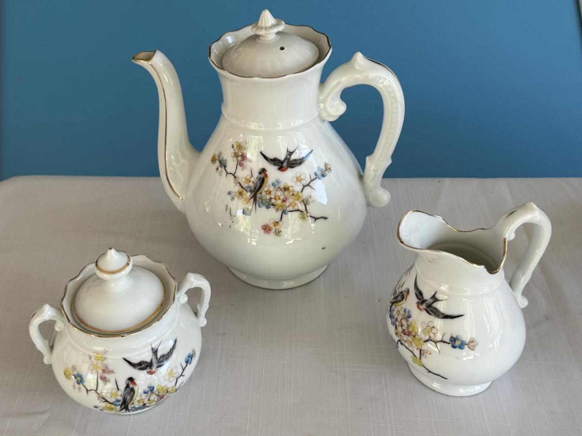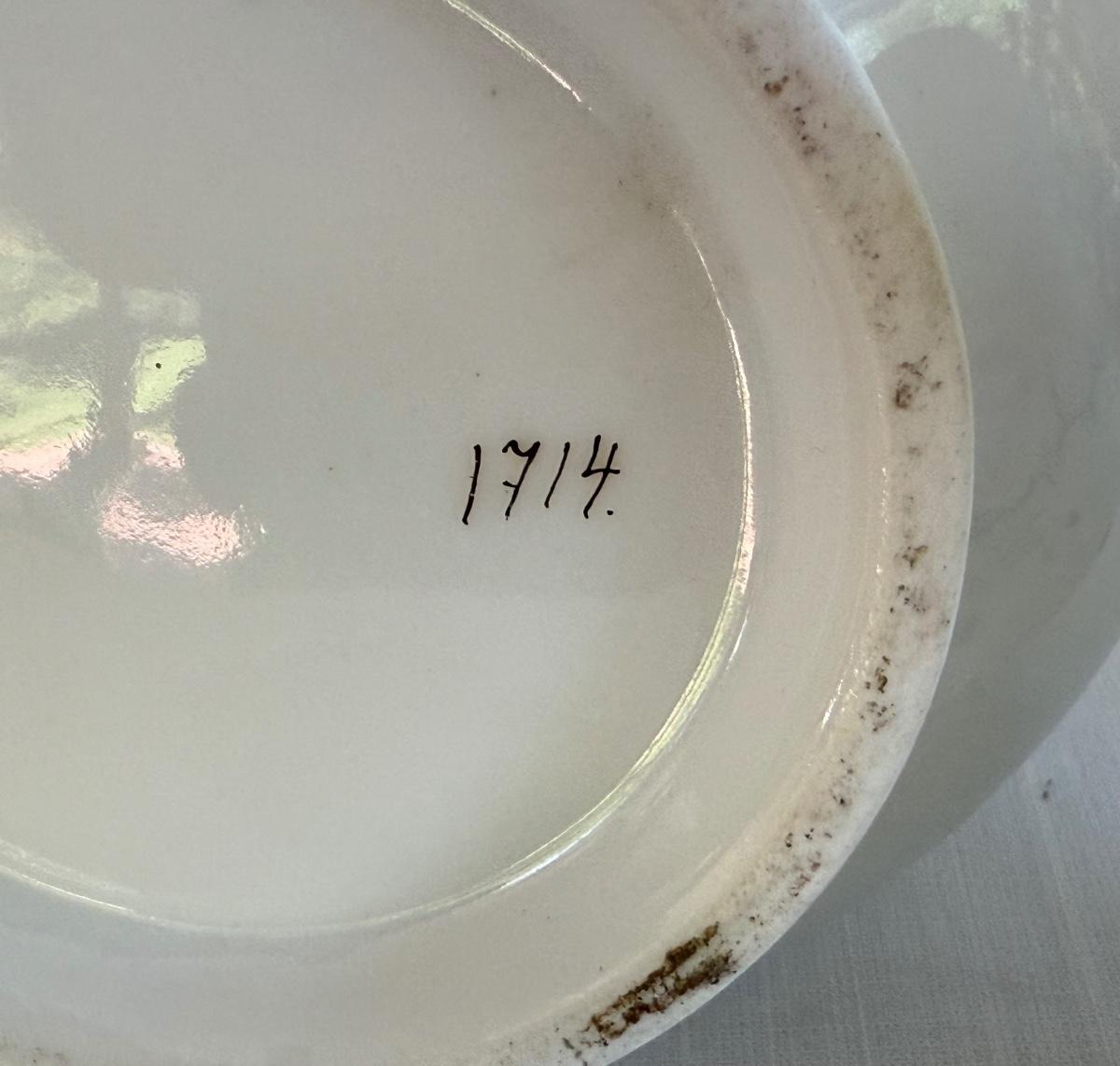 Vintage hand painted porcelain tea set, Japan 1714 markings