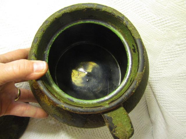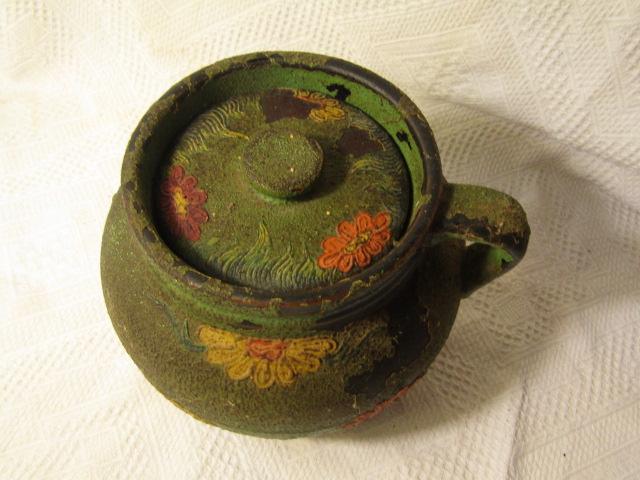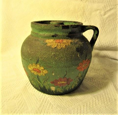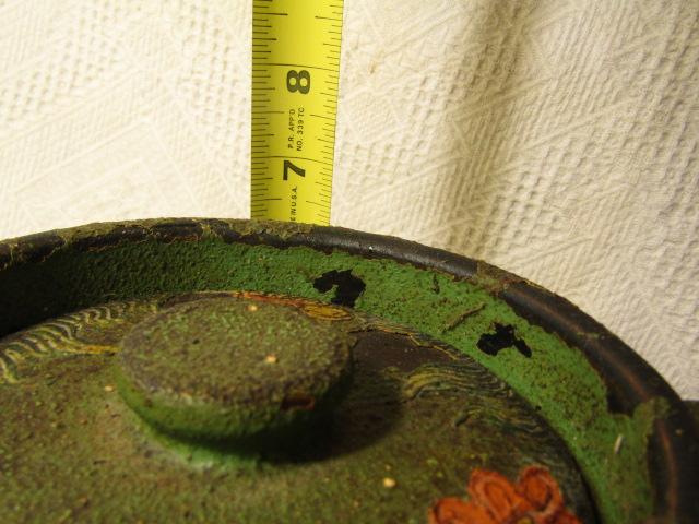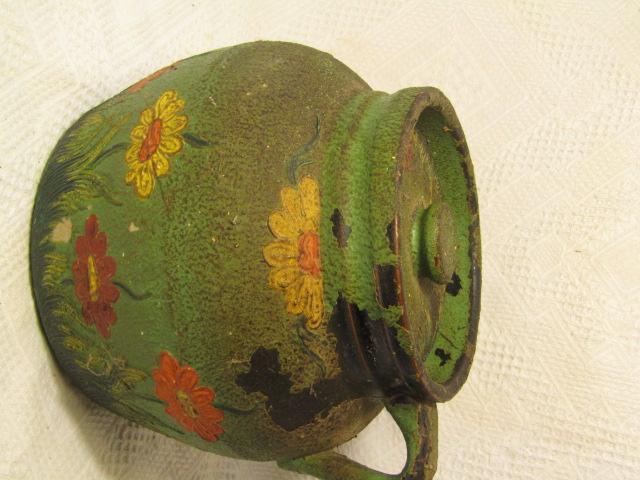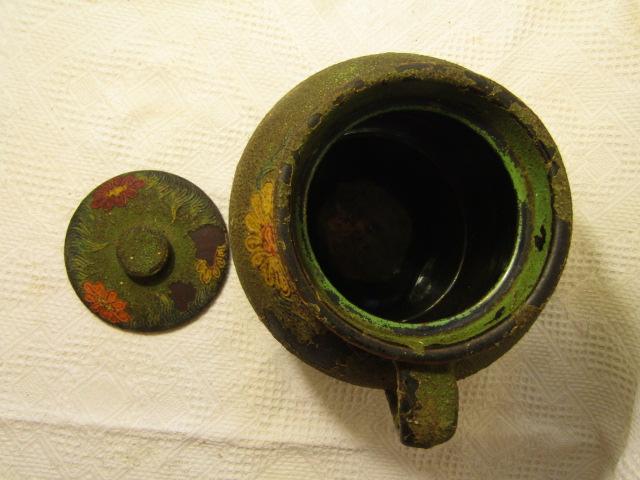 Vintage Hand Painted Pottery Pot with Lid some of the paint is missing as shown