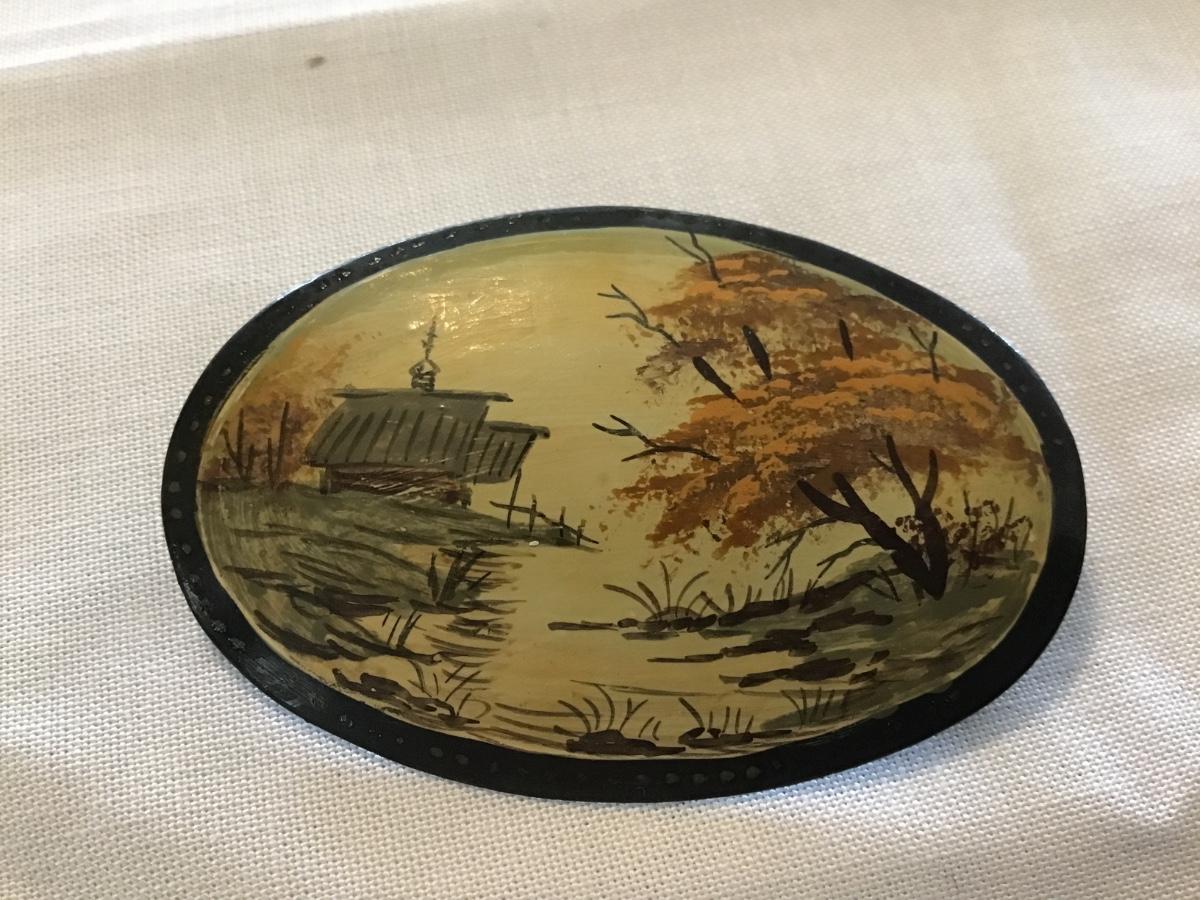 Vintage Hand painted Scene Brooch
