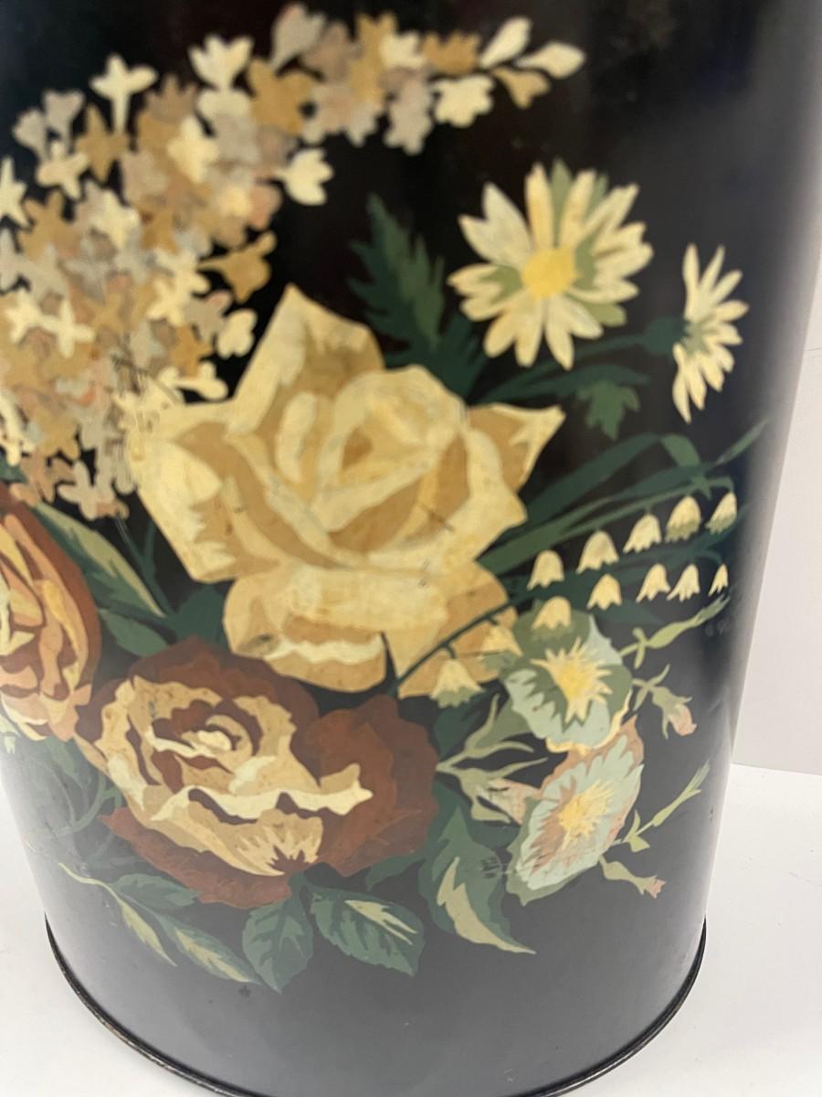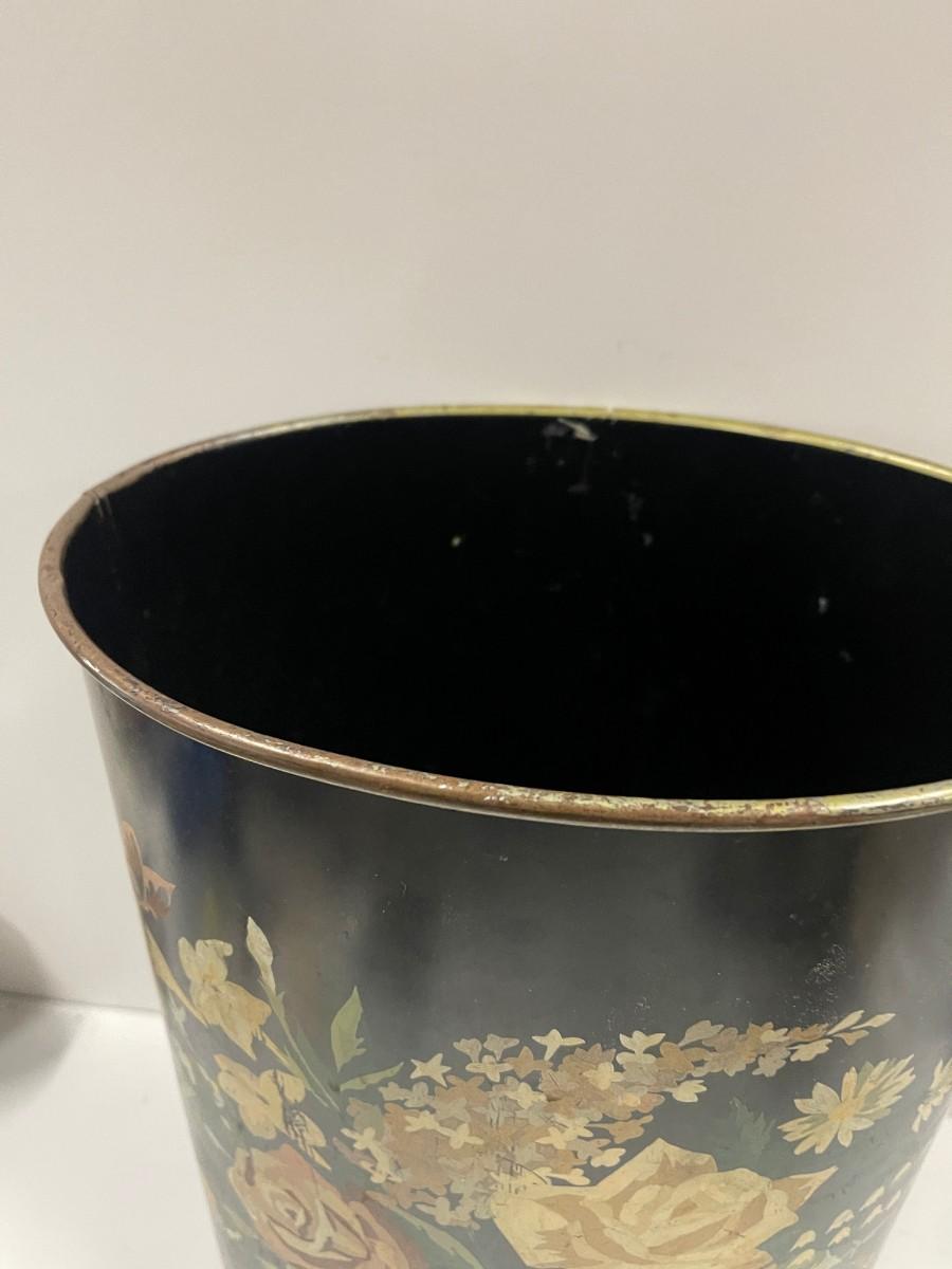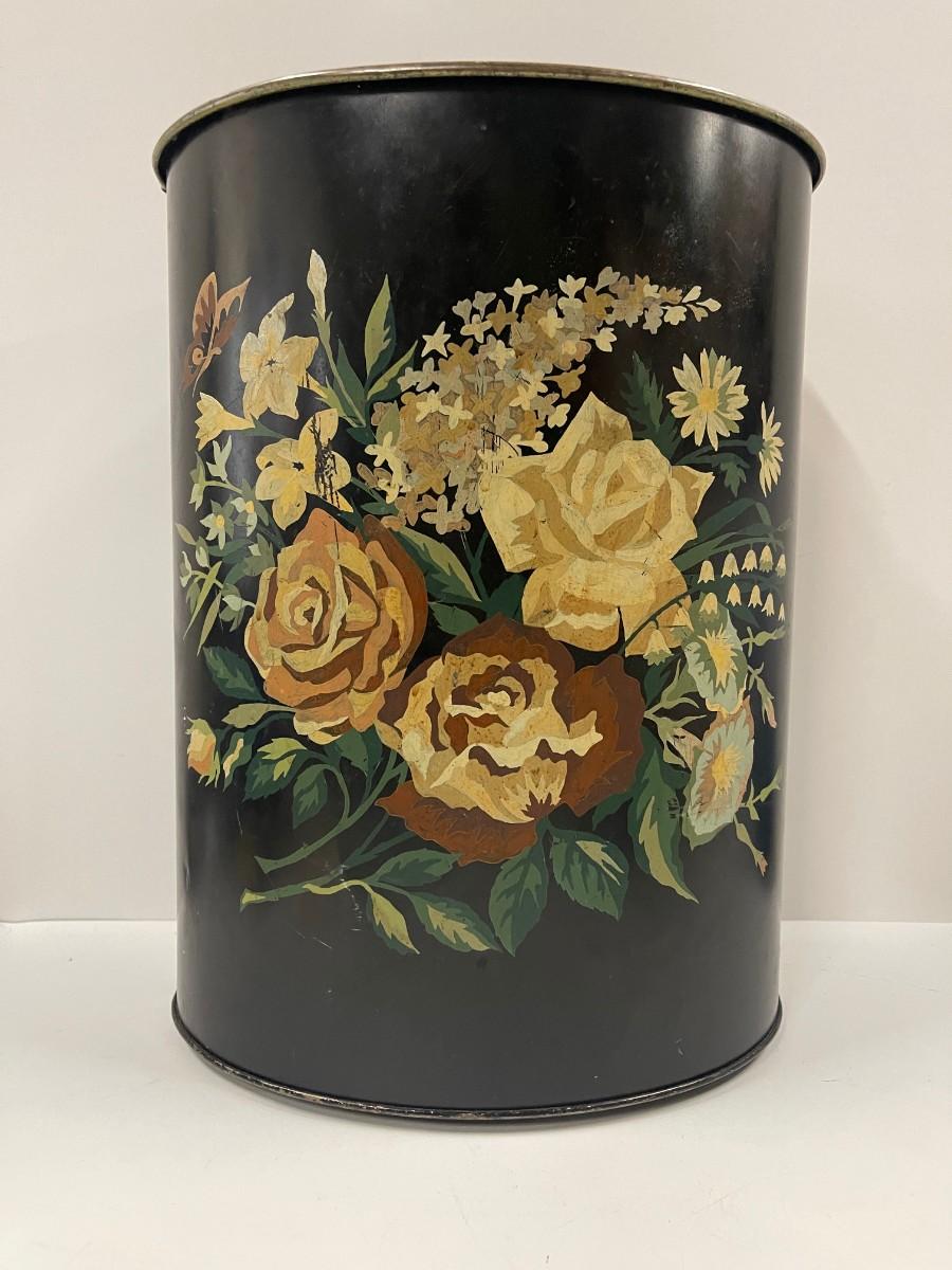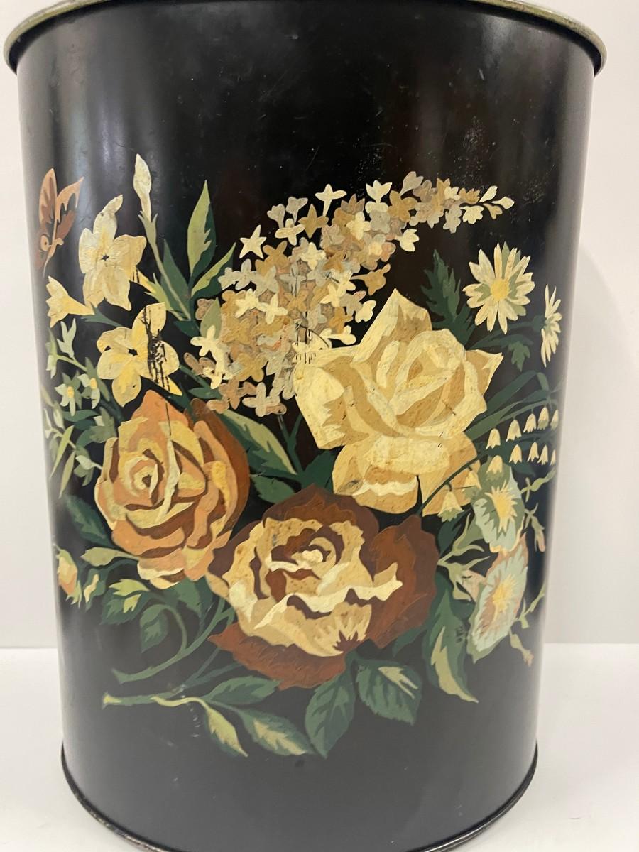 Vintage Hand Painted Tole Trash Can