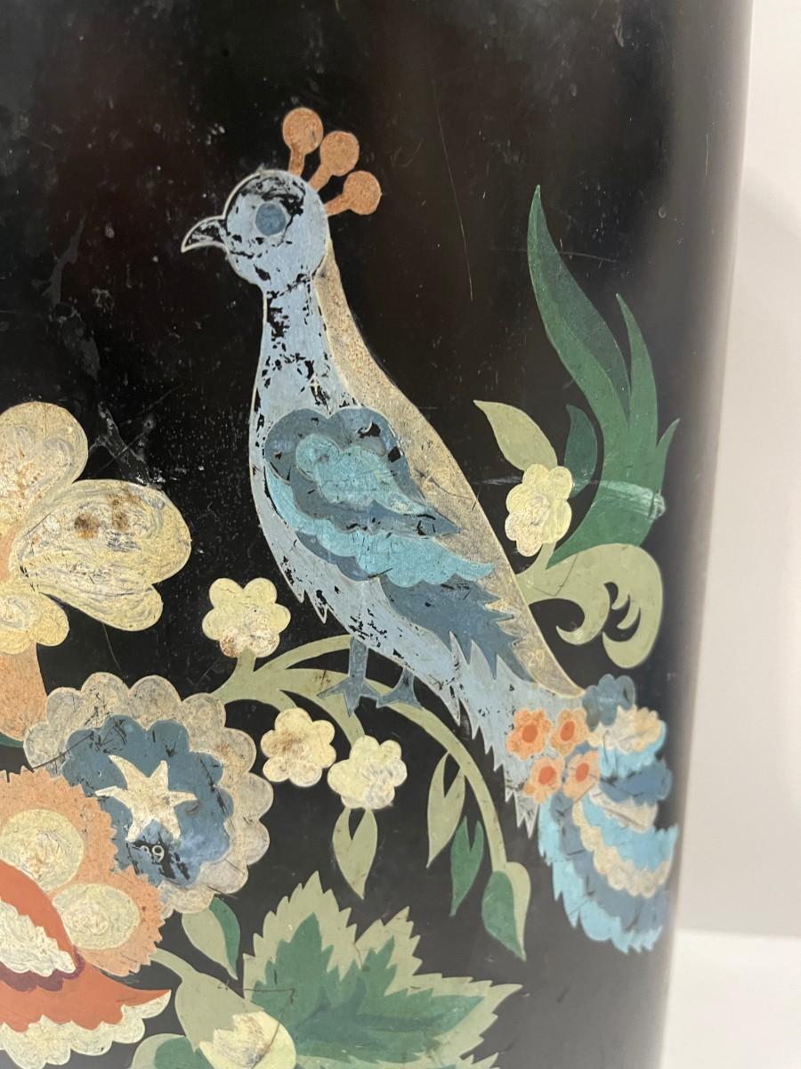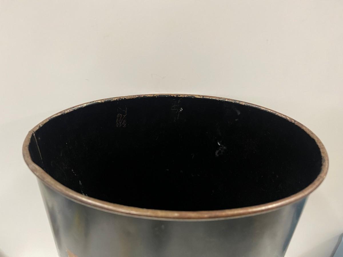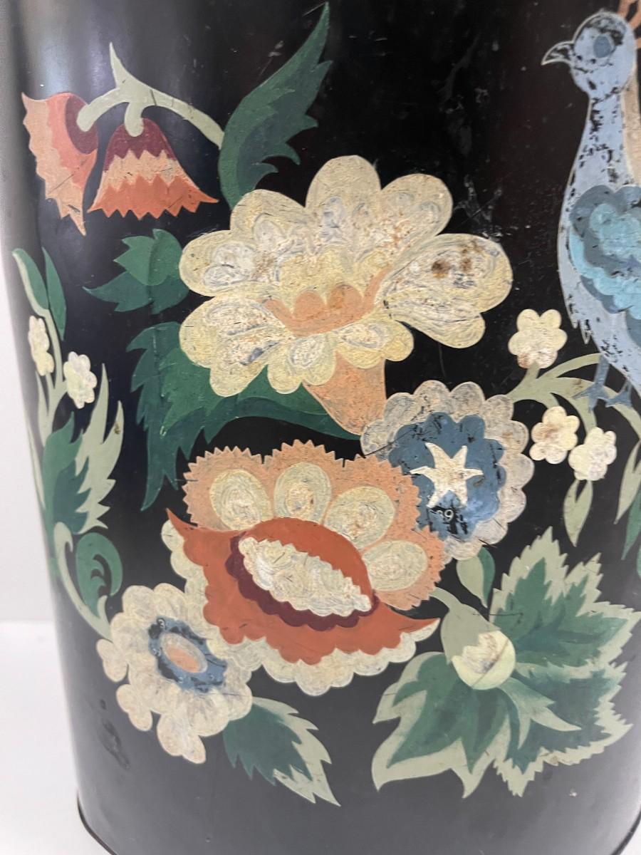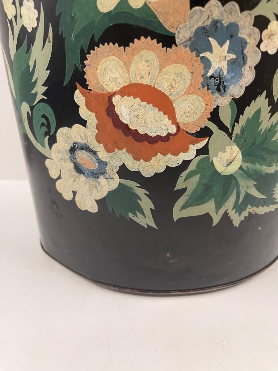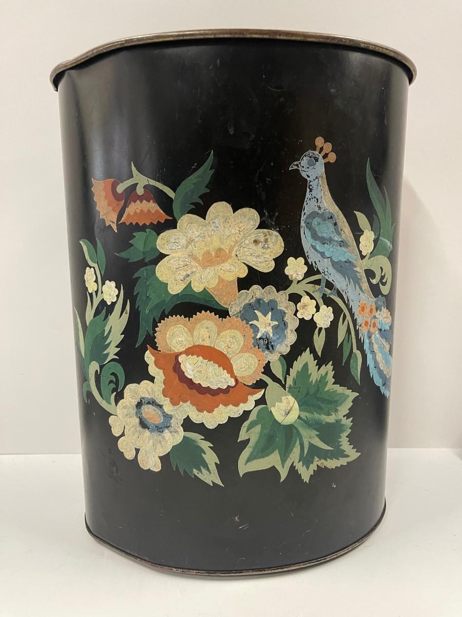 Vintage Hand Painted Tole Trash Can 2. 10" x 13". Definitely shows some wear.