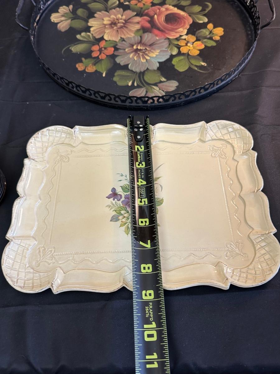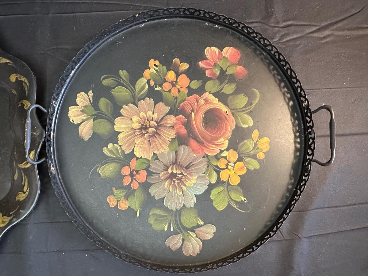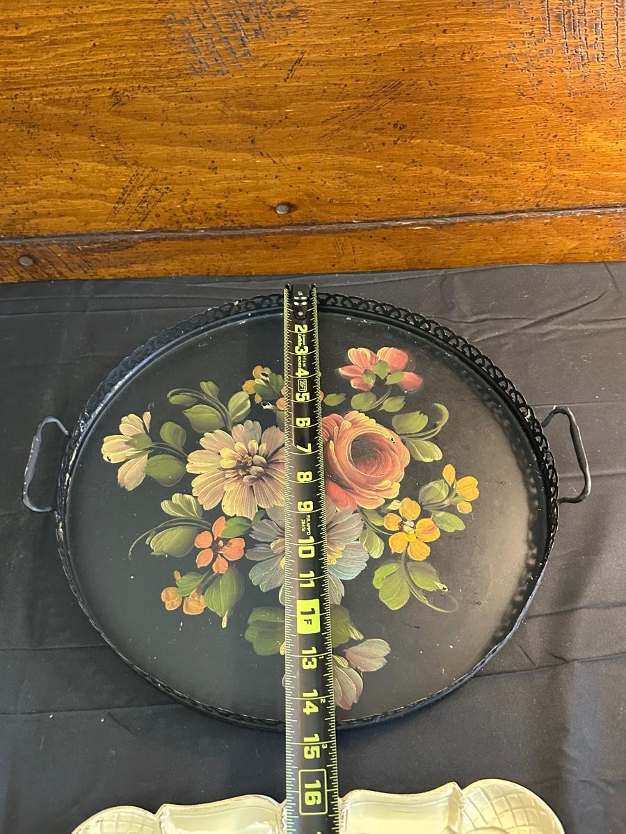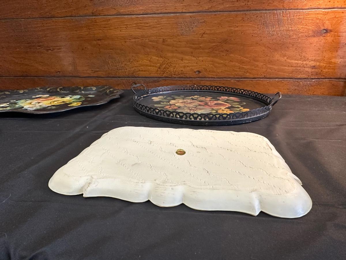 Vintage Hand Painted Toleware Plates and Stile Florentine Plate