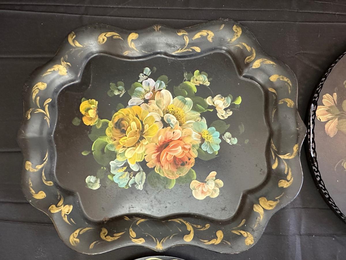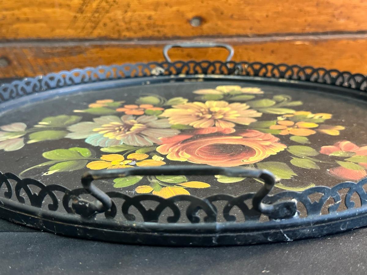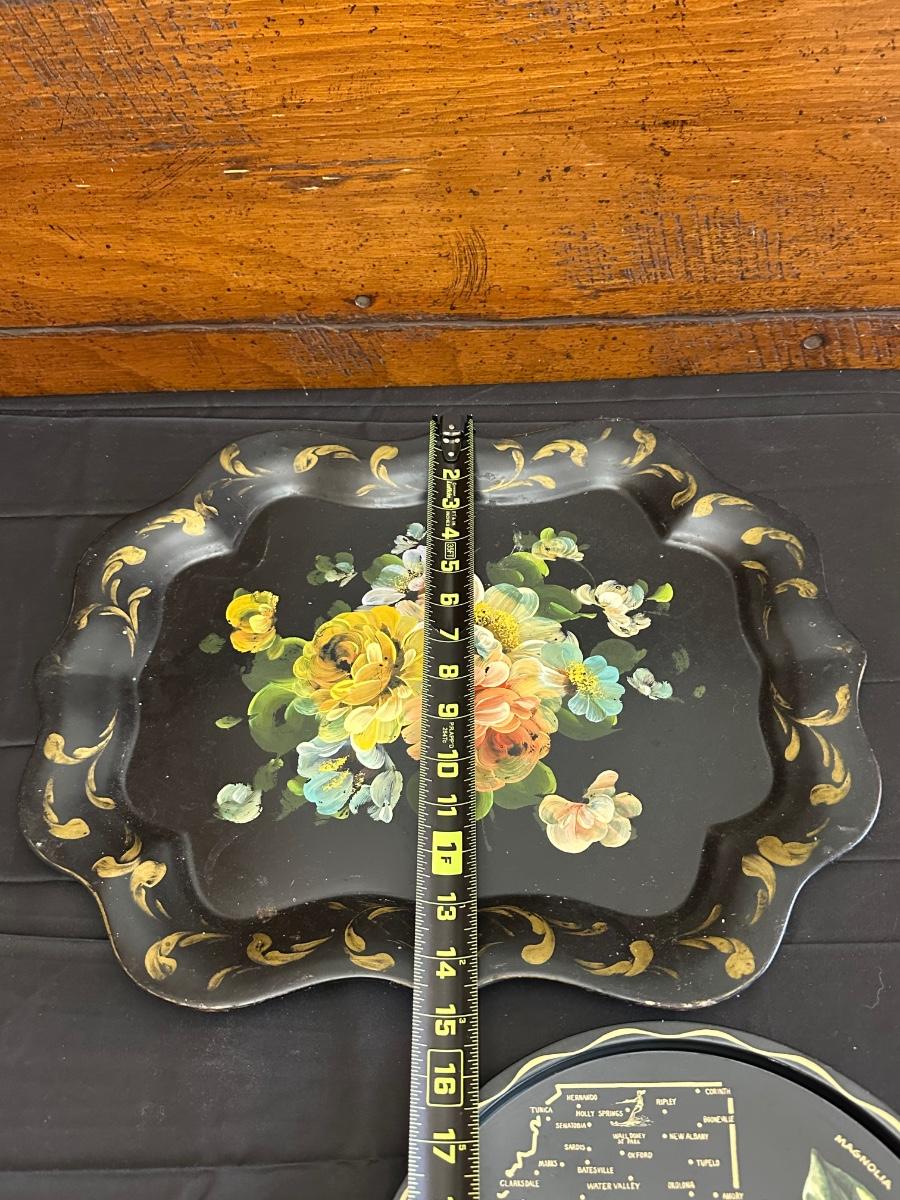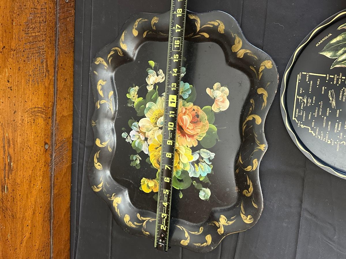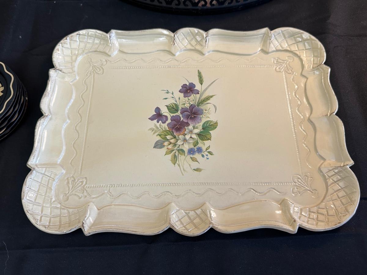 Vintage Hand Painted Toleware Plates and Stile Florentine Plate