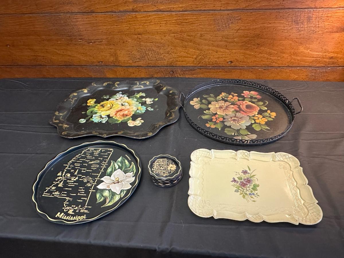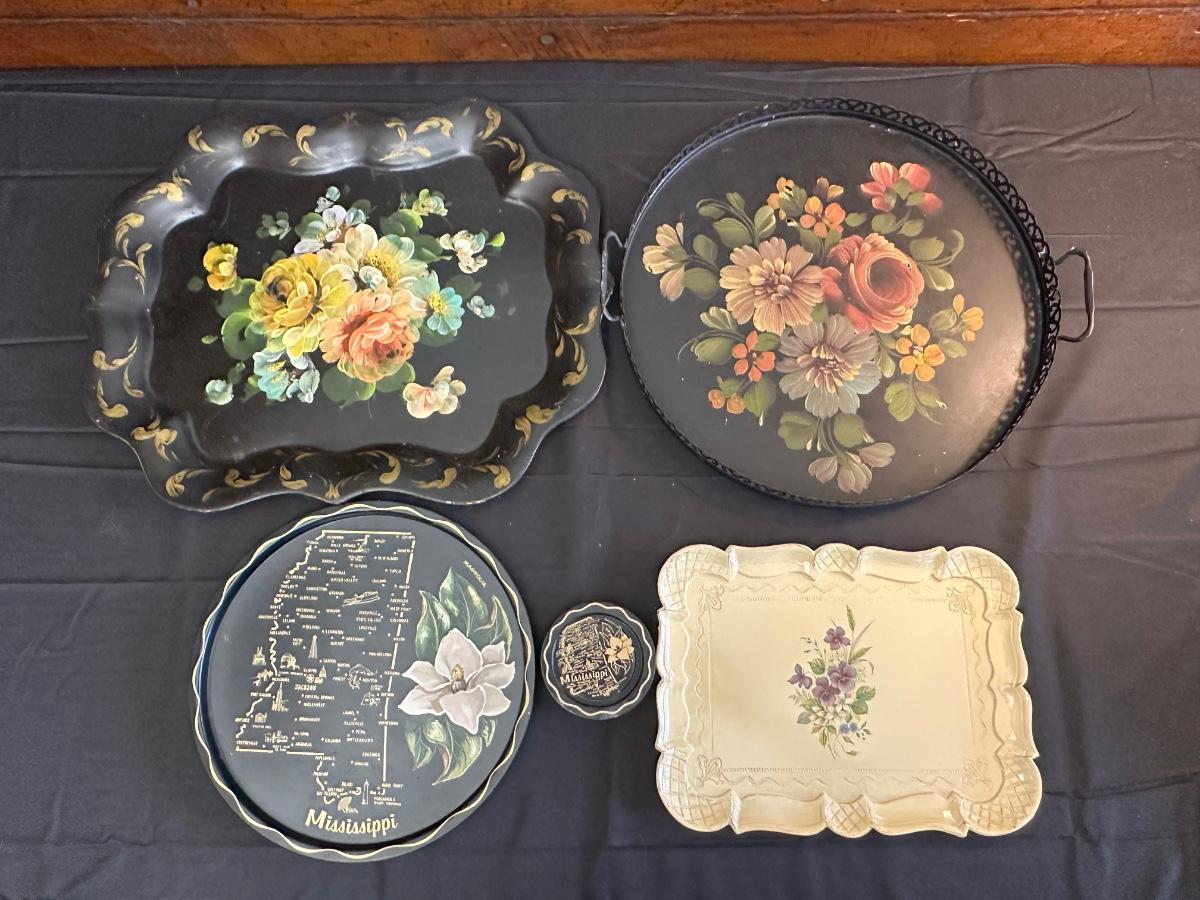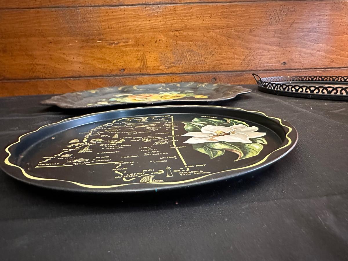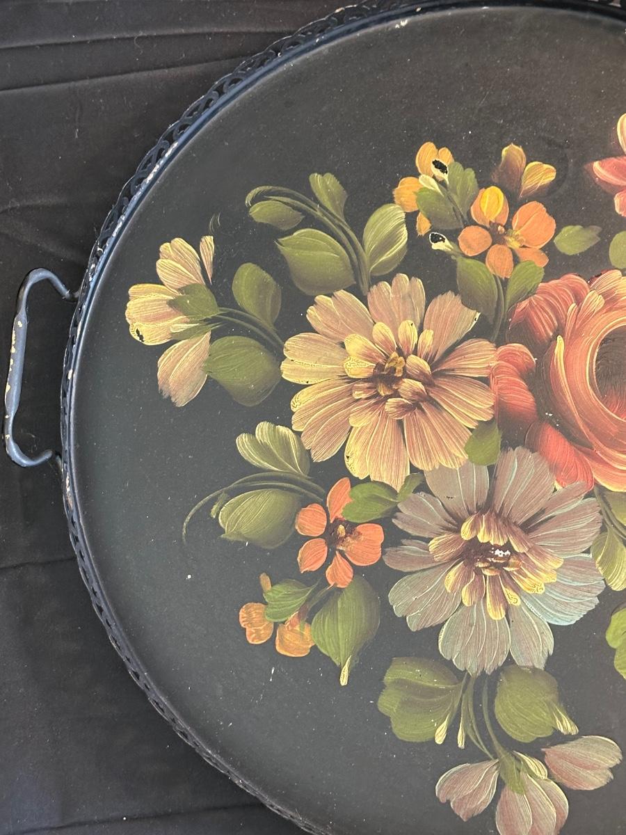 Vintage Hand Painted Toleware Plates and Stile Florentine Plate
