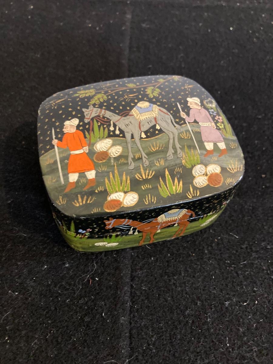 Vintage Hand Painted Trinket Box 3.5” x 3”