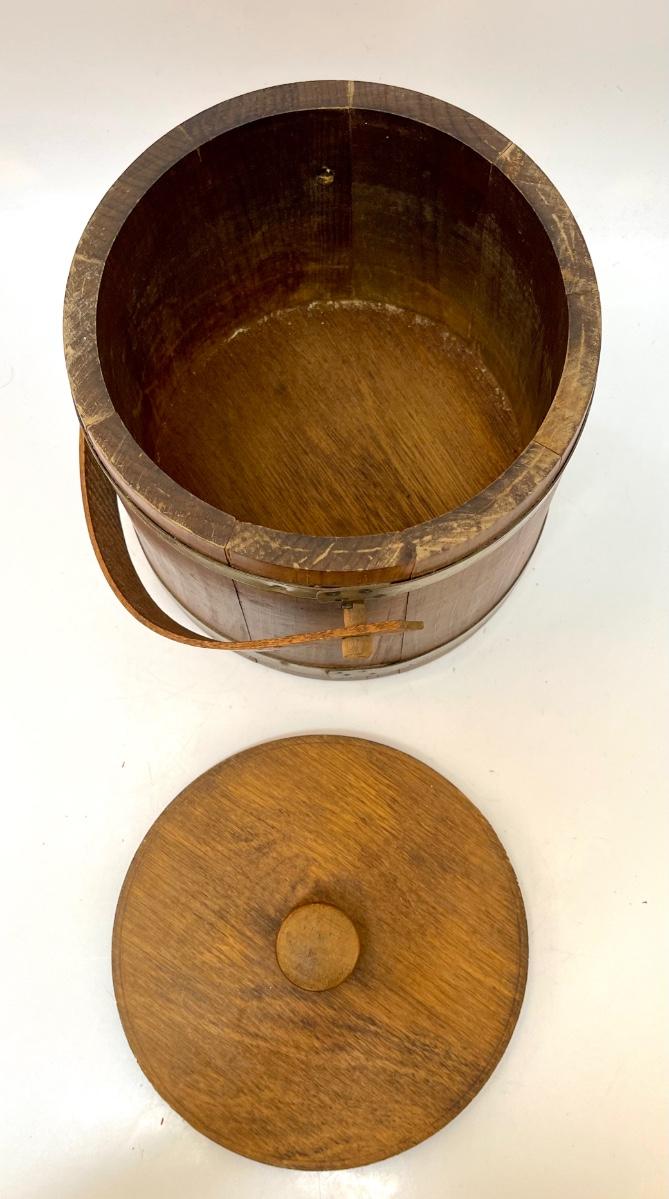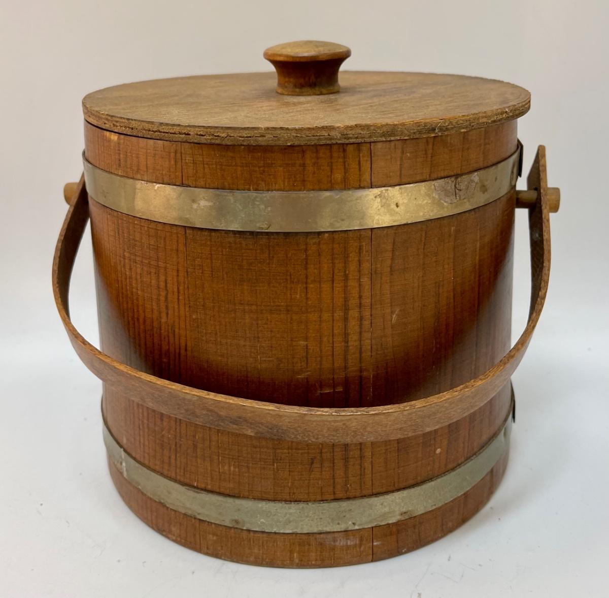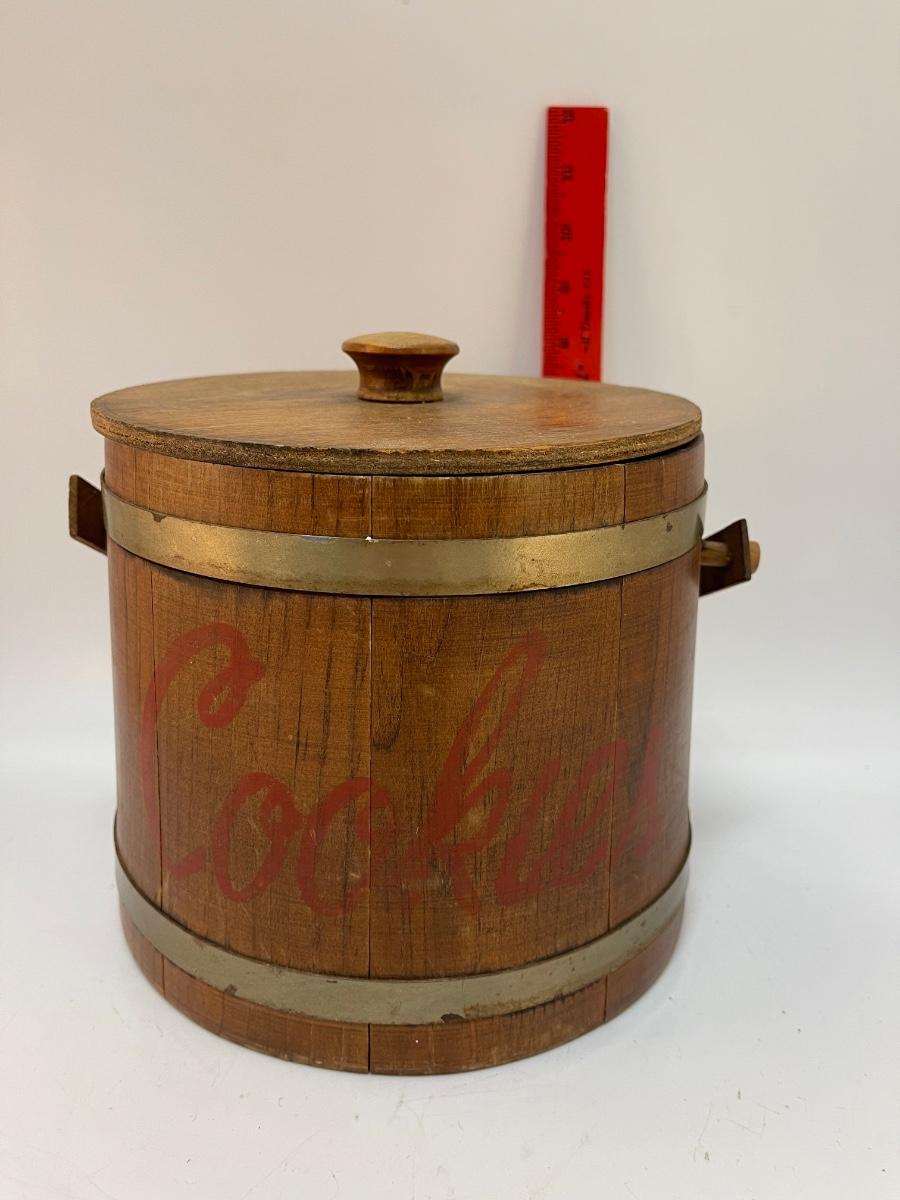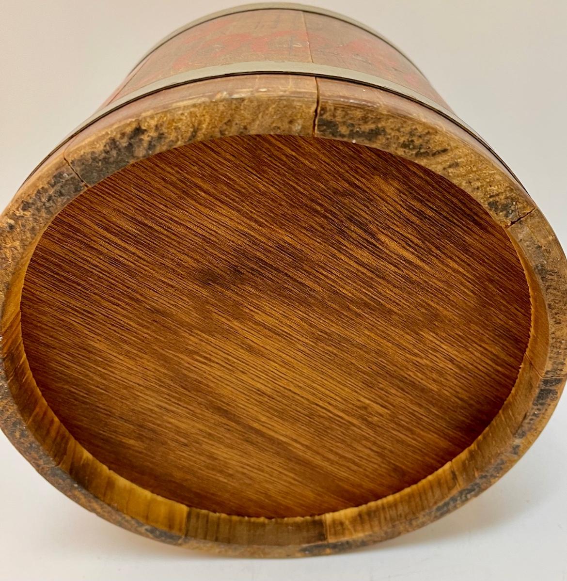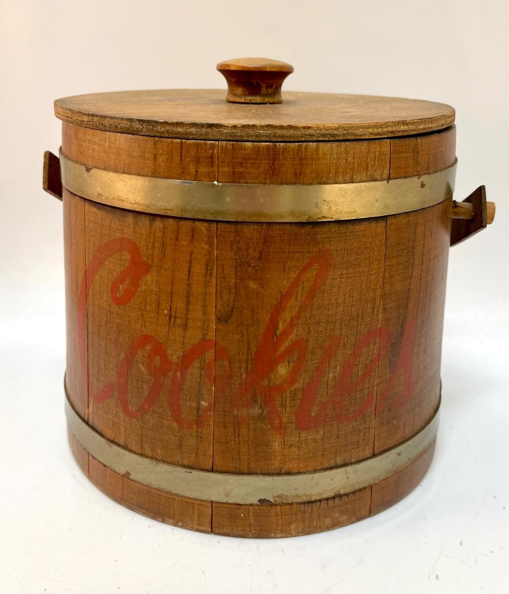 Vintage Hand Painted Wooden Bucket with Lid Cookie Jar