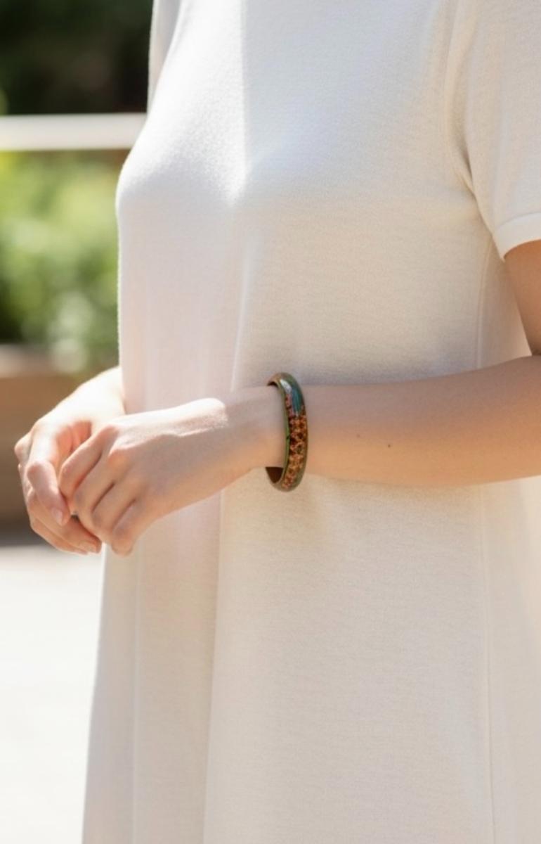 Vintage Hand Painted Wooden Leopard Bangle Bracelet