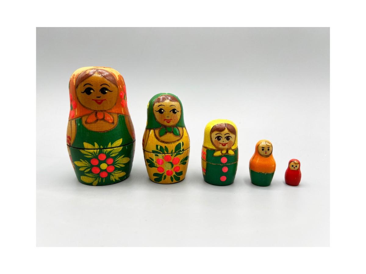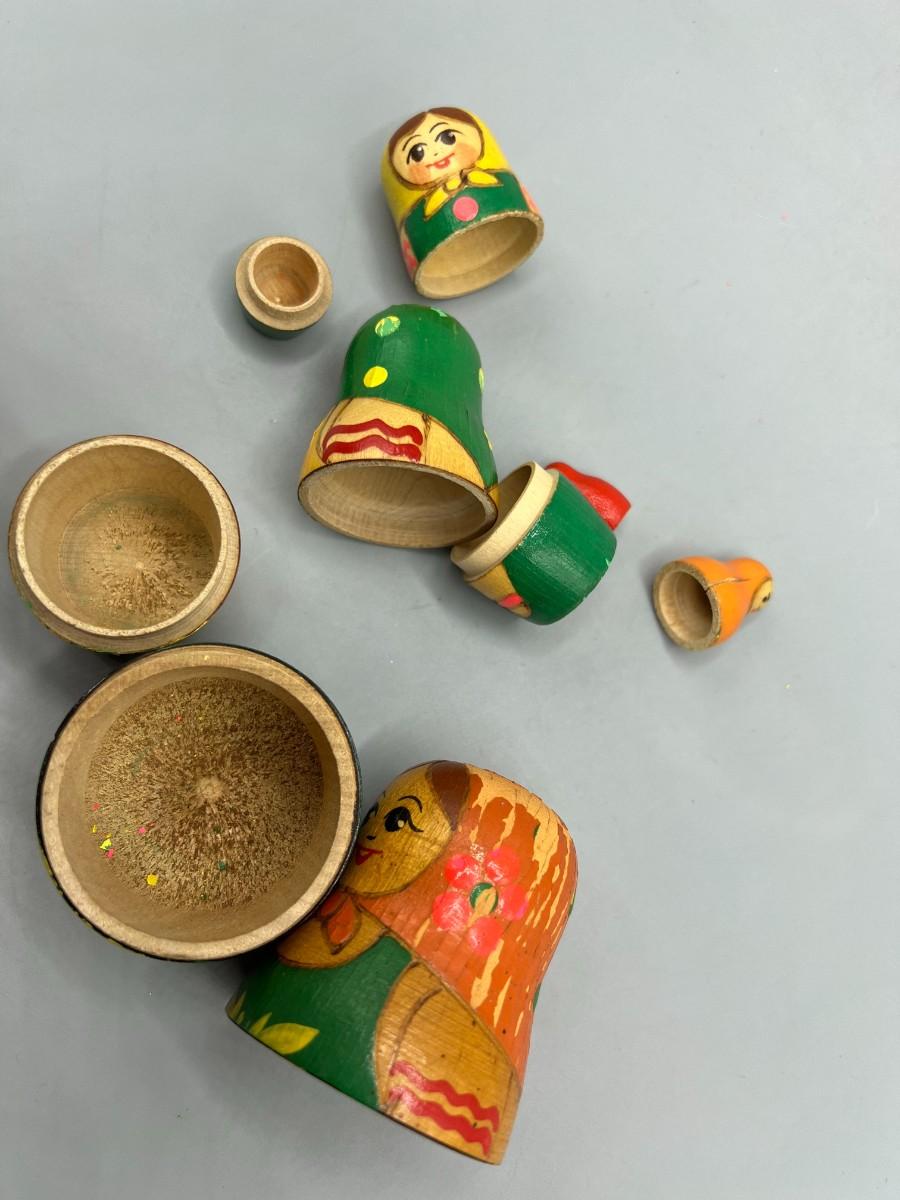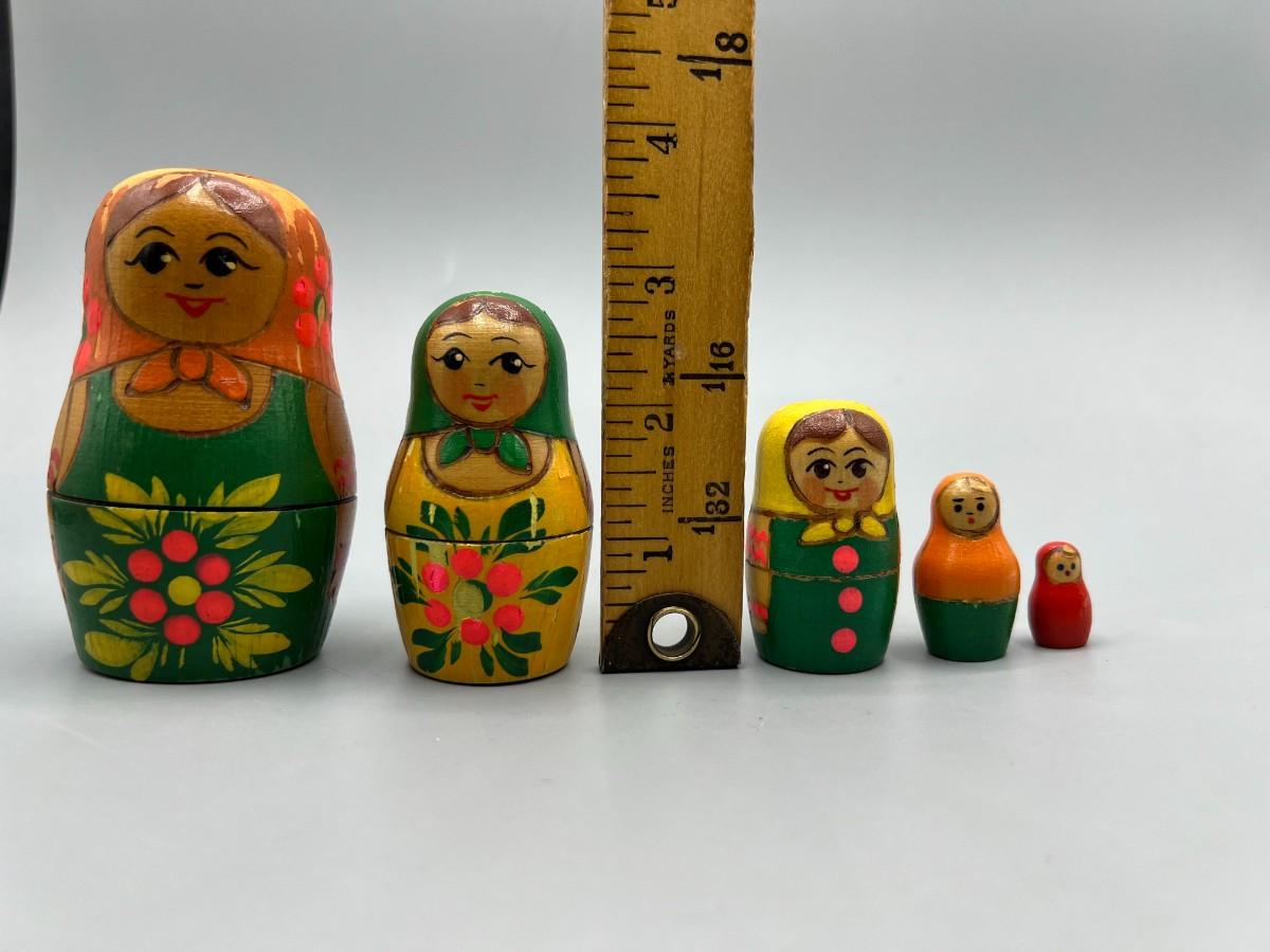 Vintage Hand Painted Wooden Russian Nesting Babushka Matryoshka Dolls Russian Souvenir