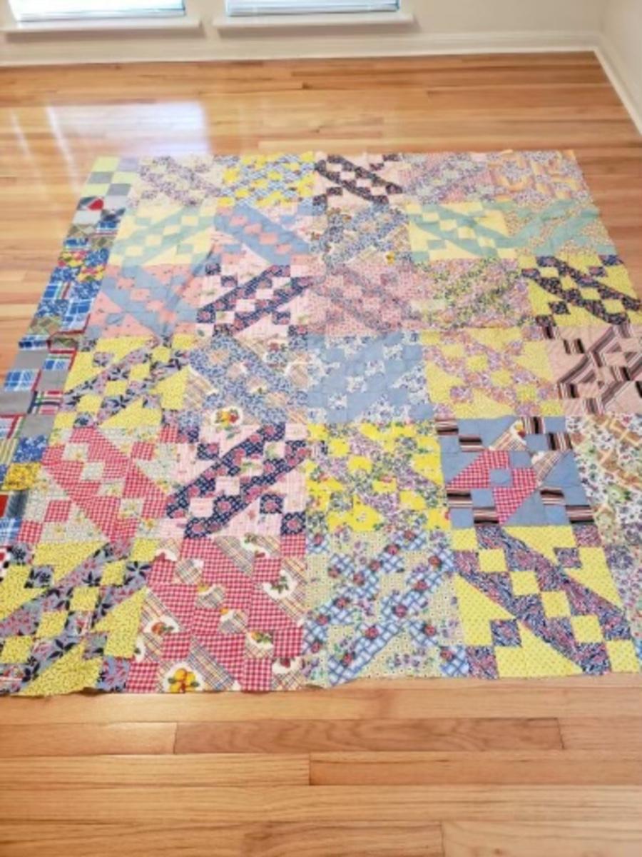 Vintage hand pieced quilt top“”Jacob's Ladder