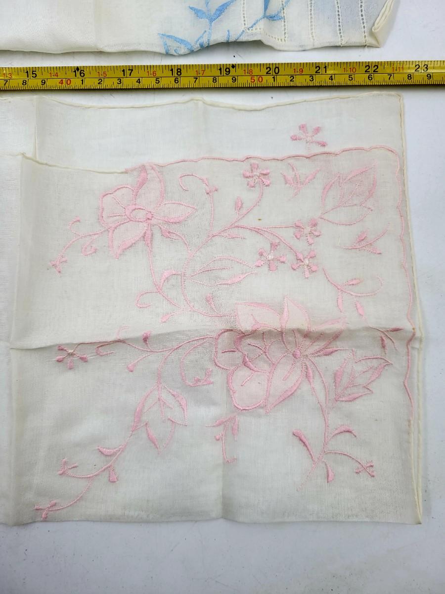 VINTAGE HAND SEWN HANDKERCHIEF - 3 PC