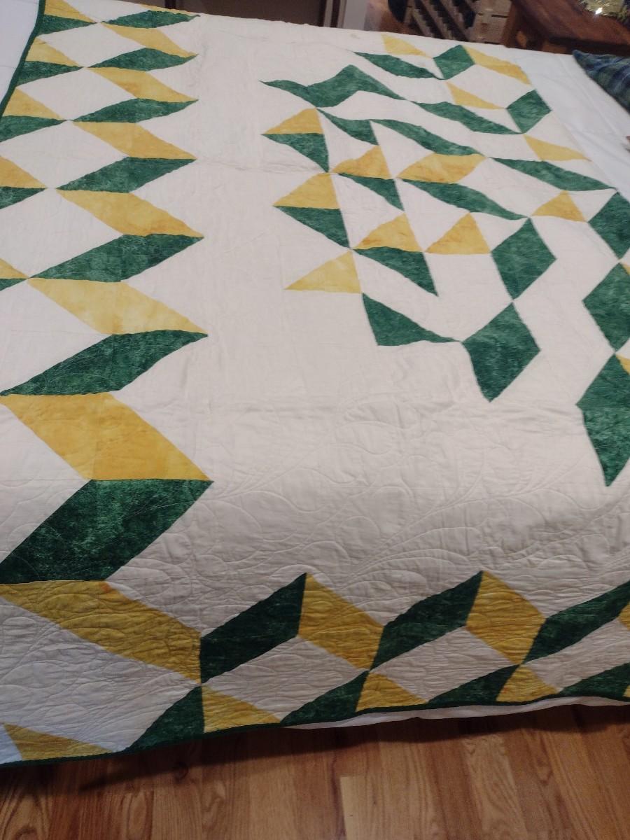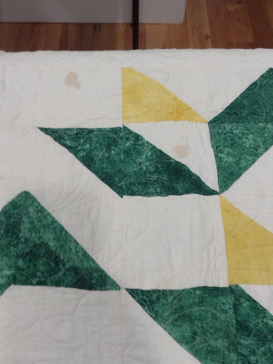 Vintage Hand Sewn Quilt Geometric Design 84"x92". Has some minor stains as shown