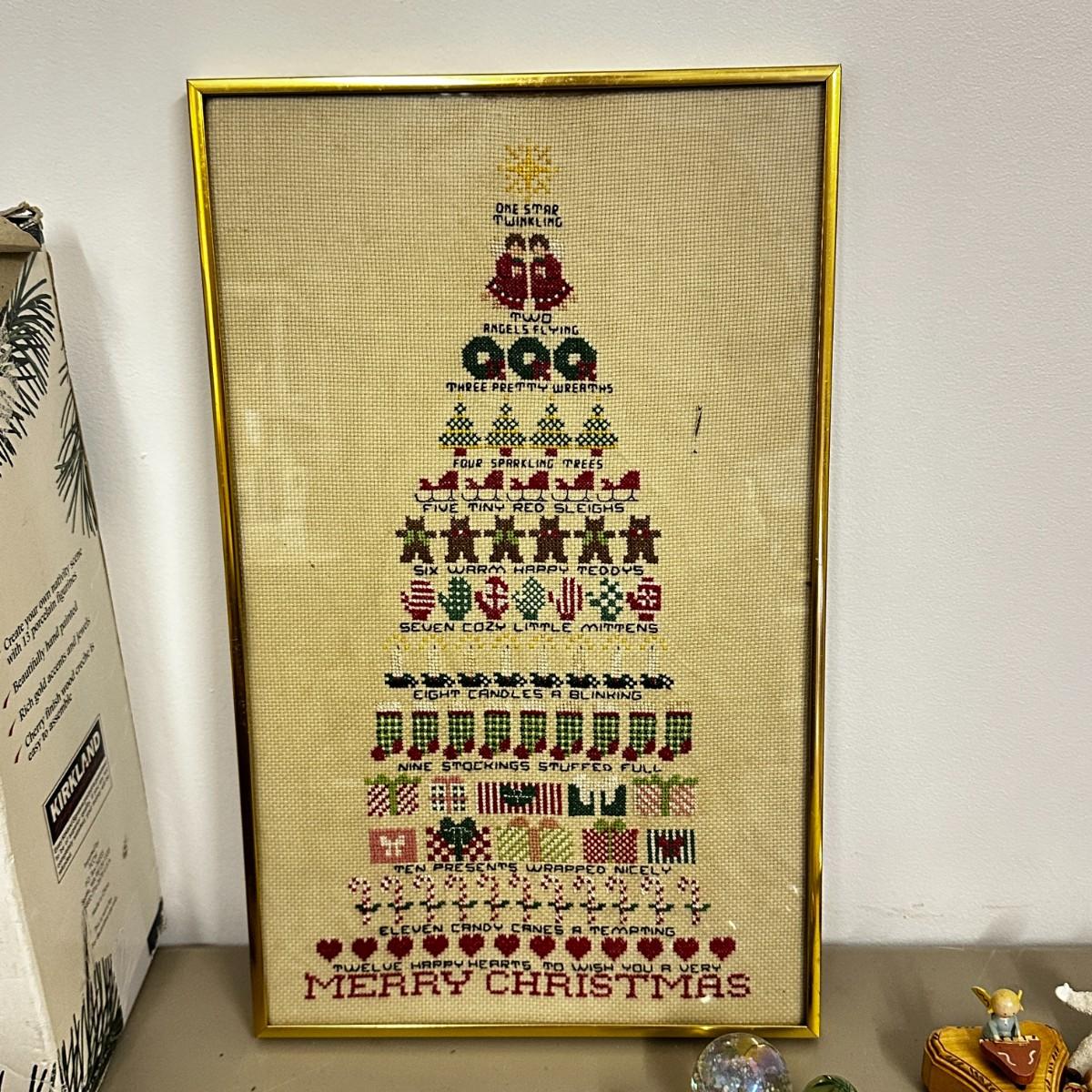 Vintage Hand Stitched Christmas Artwork- Fair Condition