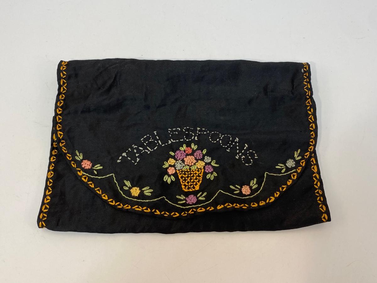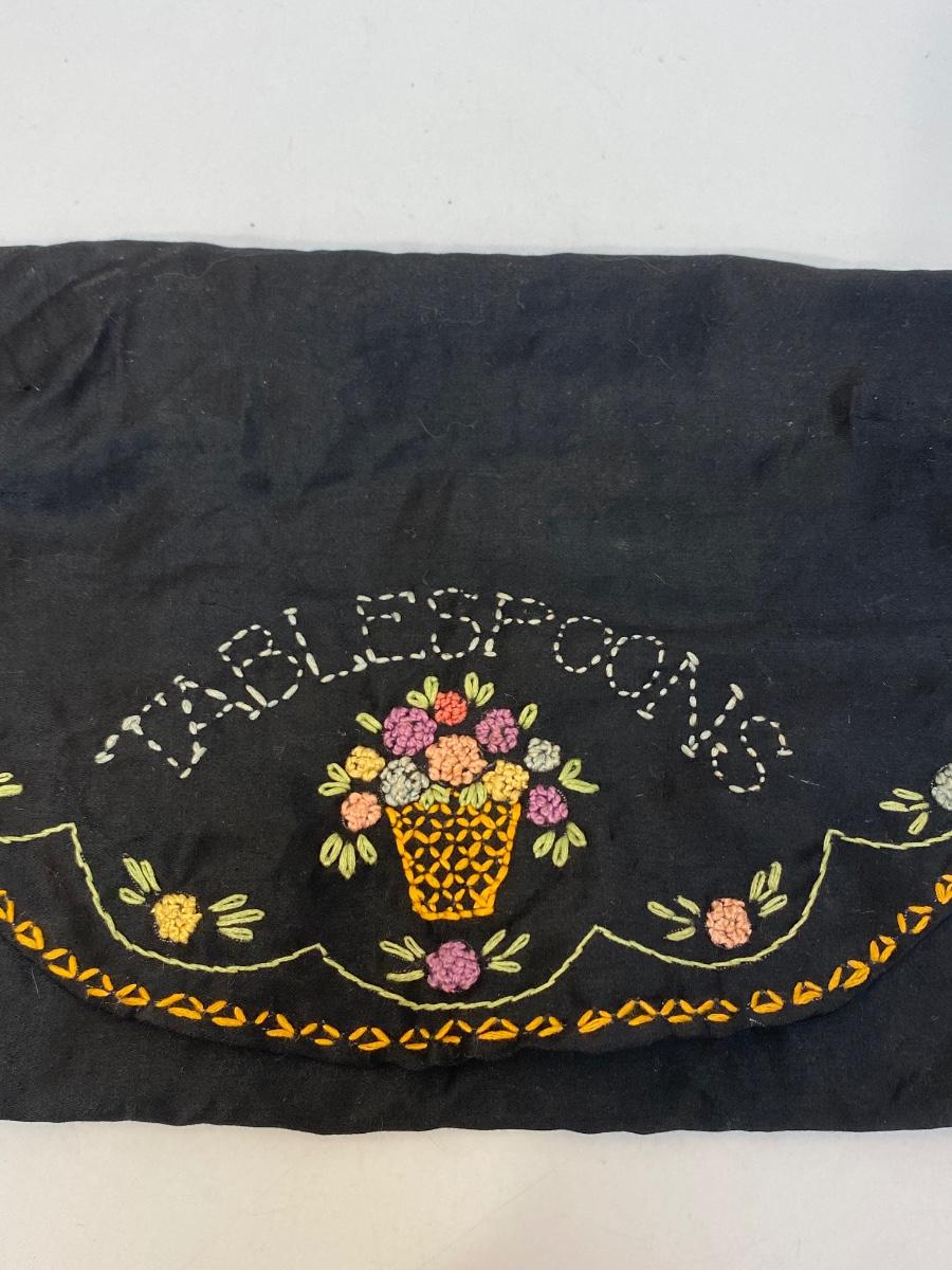 Vintage Hand Stitched Tablespoon Protective Cloth Storage Bag. Hand stitched flower design. In good vintage condition.