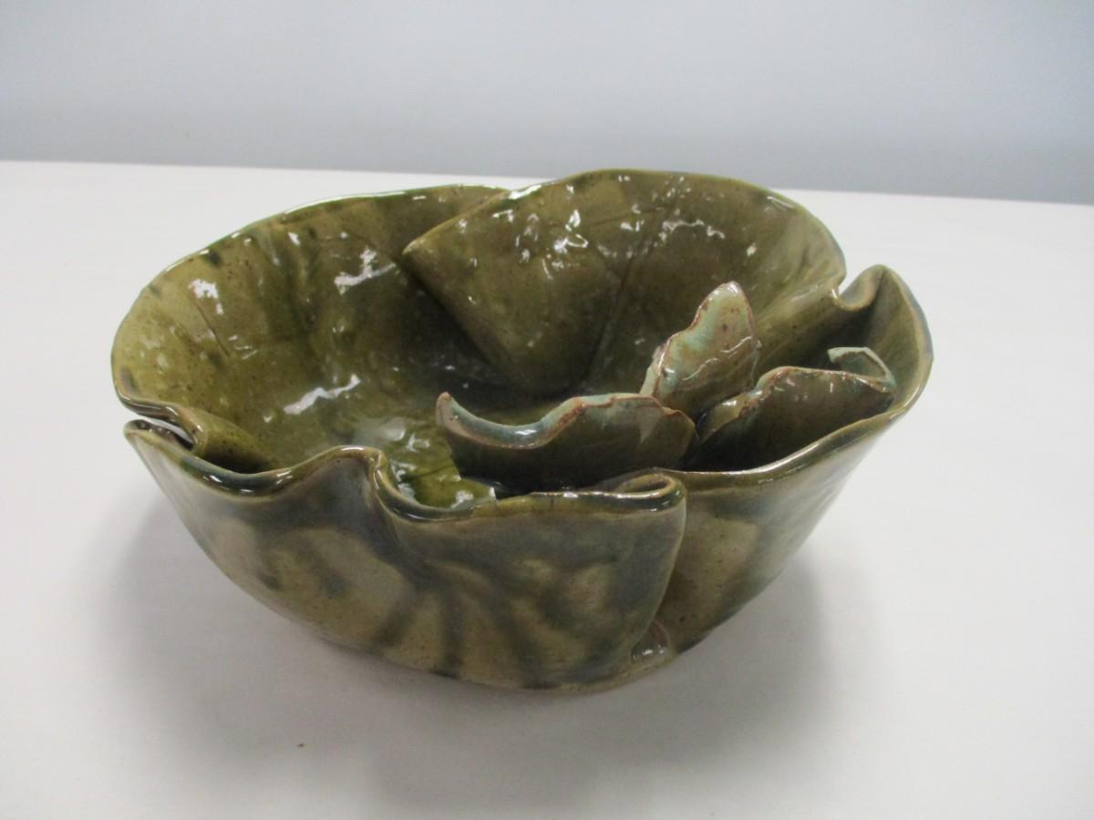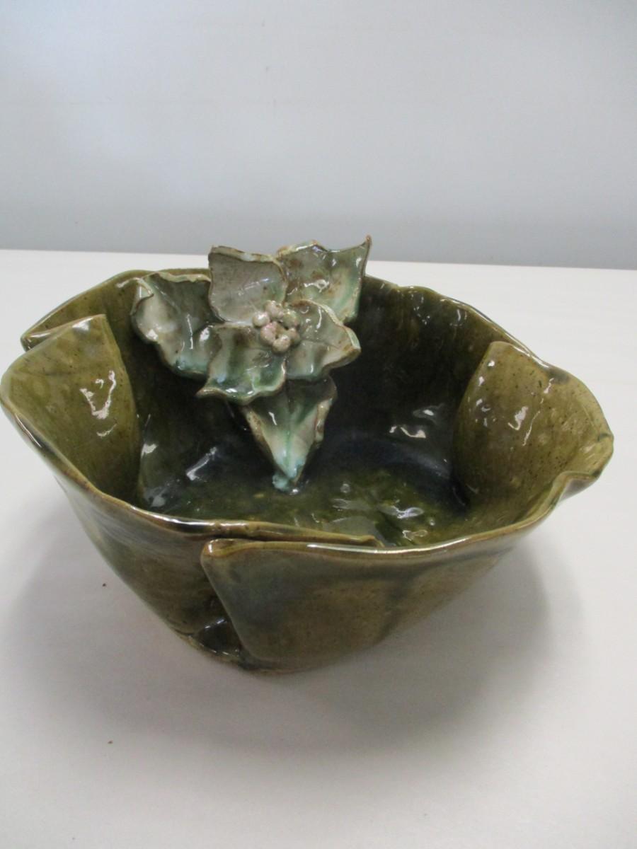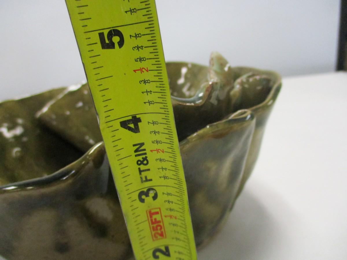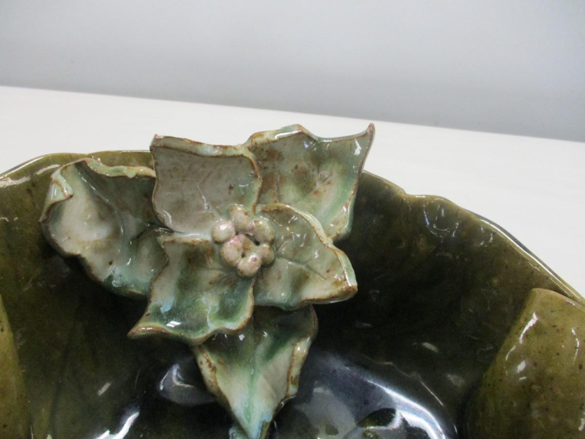Vintage Hand Thrown Folded Side Pottery Bowl With Holly & Berries