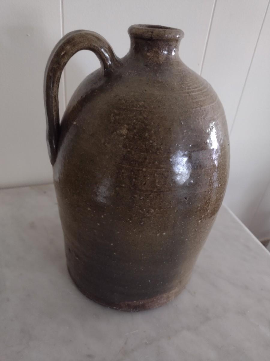 Vintage Hand Thrown Potter Jug with Ear Lug Handle and Turned Lip